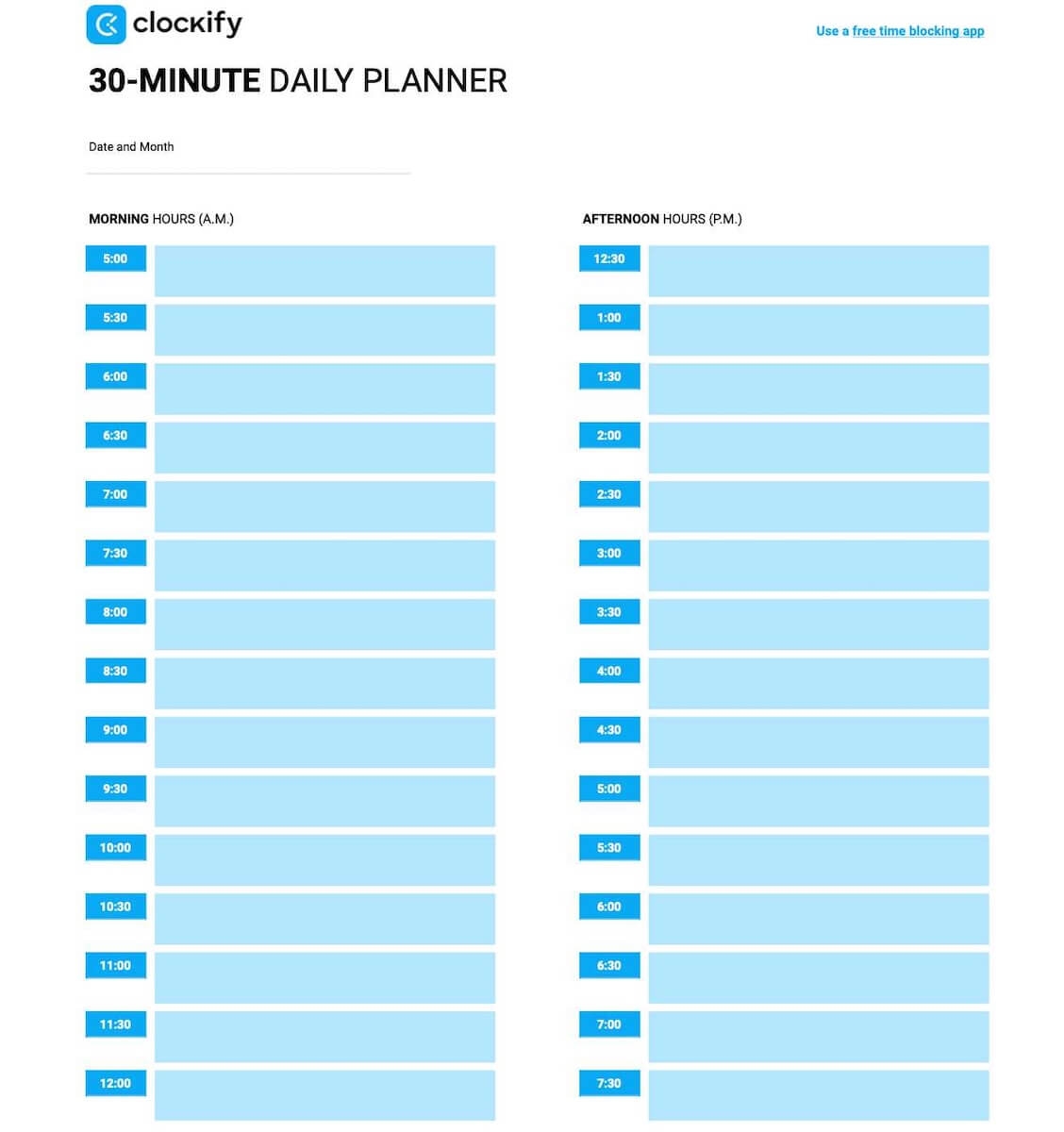 In today’s fast-paced world, time management is crucial for staying organized and productive. One effective way to manage your time efficiently is by using a 30-minute schedule template. This type of schedule breaks down your day into half-hour intervals, allowing you to allocate time for tasks and activities with precision.