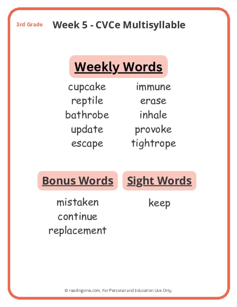 3rd Grade Spelling Words Free Printable 36 Week List