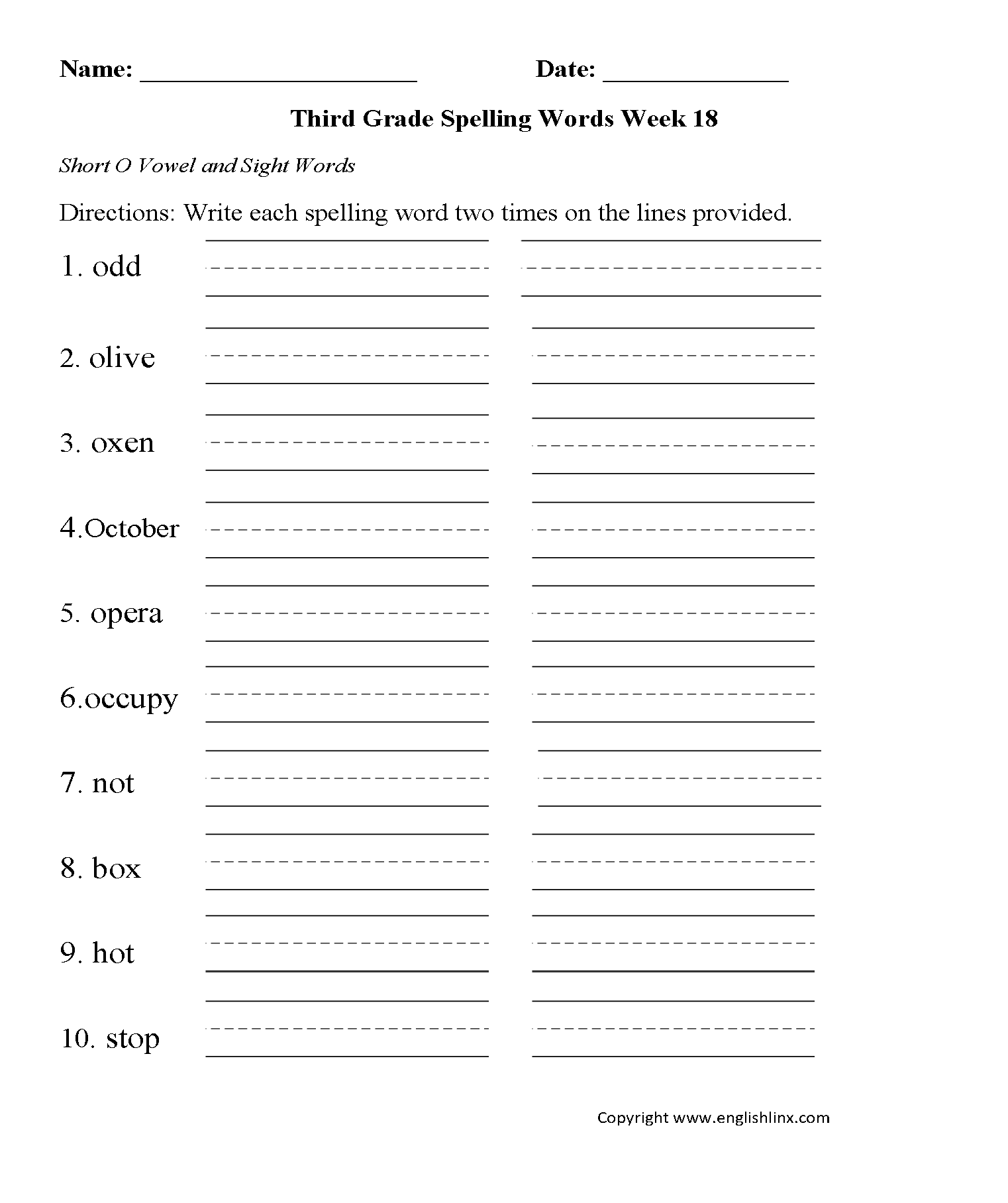 Download and Print 3rd grade spelling words worksheets Listed below