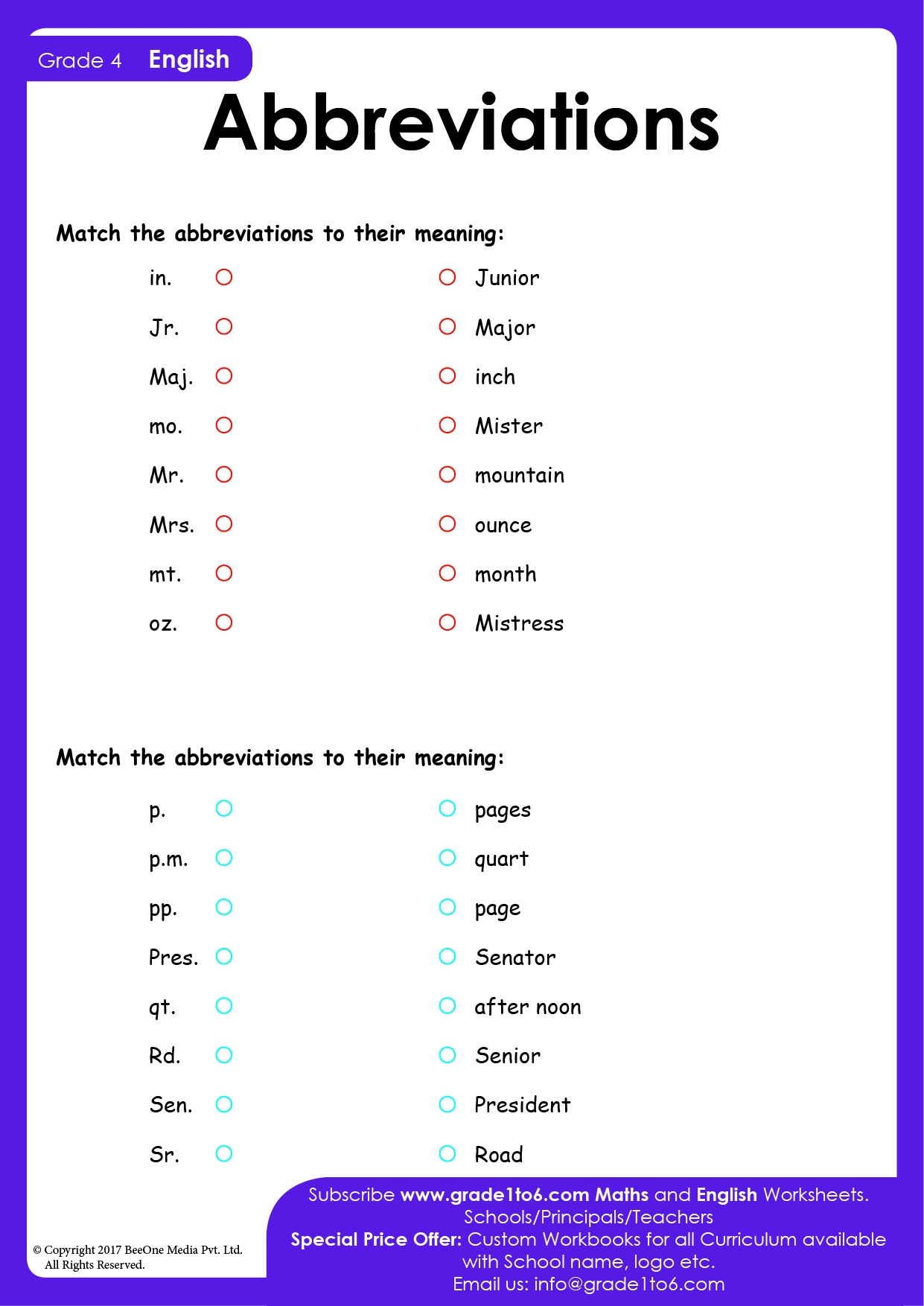 Abbreviations are shortened forms of words or phrases that are commonly used in written communication to save time and space. Teaching students how to use abbreviations correctly is an important part of their language development. Abbreviation worksheets are a great way to practice and reinforce this skill in a fun and engaging way.