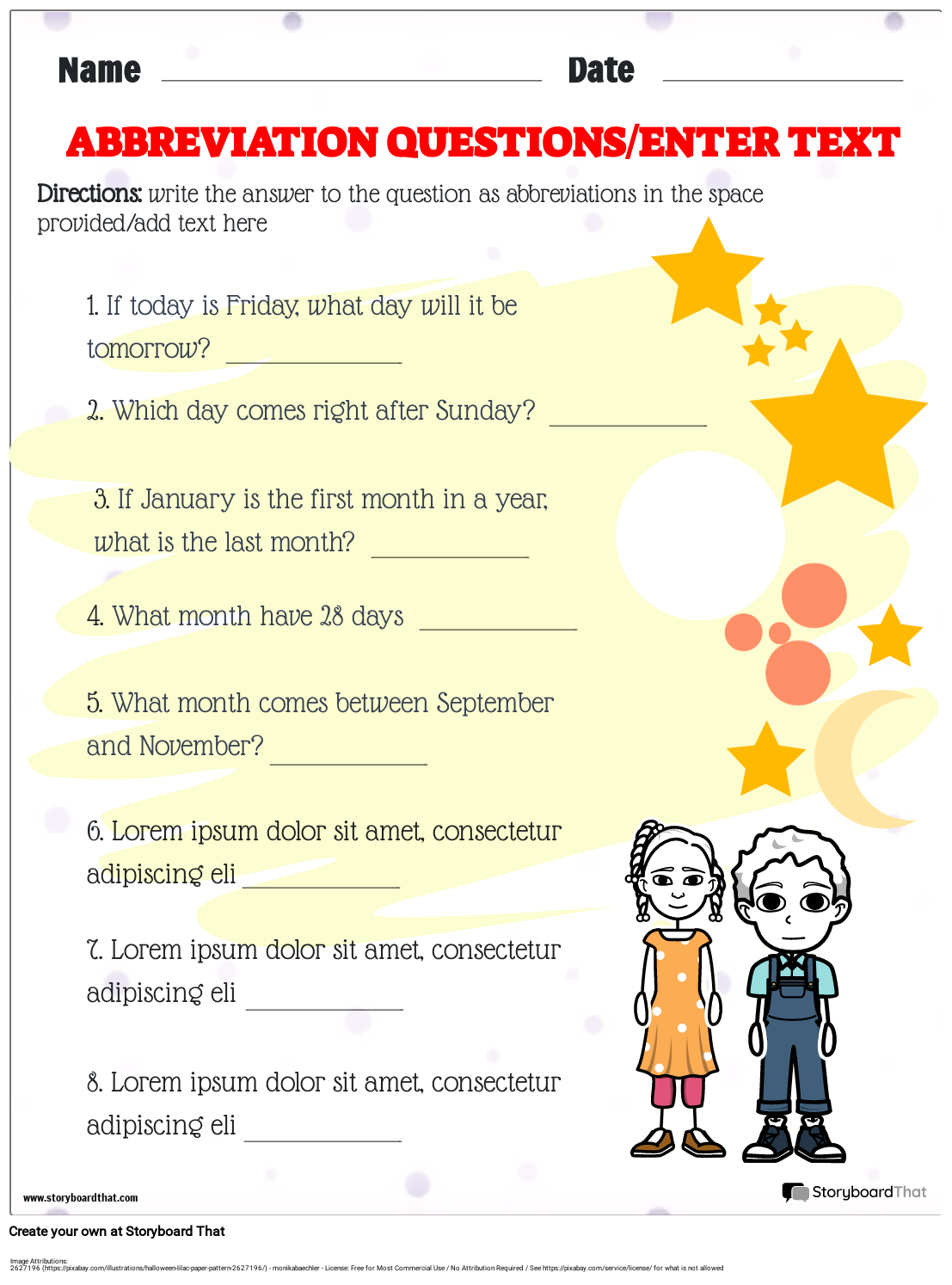 Storyboard That Free Abbreviation Worksheets For Teachers