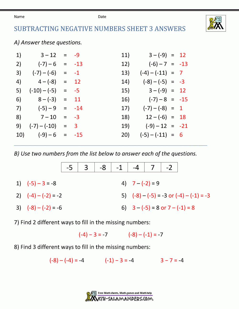 One of the main benefits of using a worksheet to practice adding and subtracting positive and negative numbers is that it provides students with structured practice problems. These problems are designed to help students build their skills gradually, starting with simpler problems and progressing to more challenging ones.