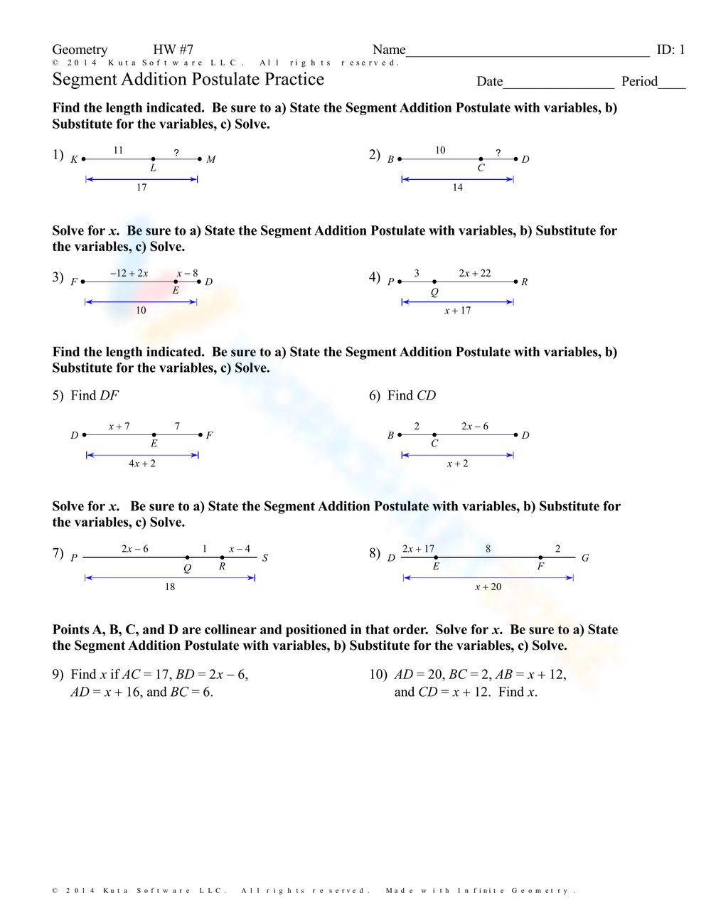 Understanding the addition postulate is crucial for students to develop their problem-solving skills and mathematical reasoning. To reinforce this concept, teachers often provide students with worksheets that allow them to practice applying the addition postulate in various scenarios.
