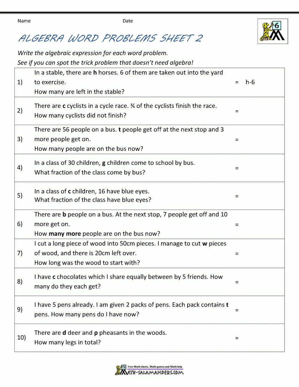One common type of algebra beginner worksheet is the solving equations worksheet. These worksheets typically present students with a series of equations that they must solve for a given variable. By practicing solving equations, students can develop their problem-solving skills and become more comfortable with algebraic manipulation.