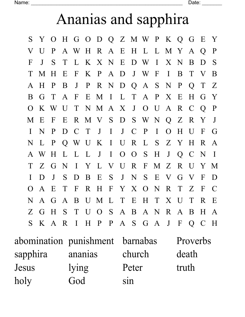Ananias And Sapphira Word Search WordMint