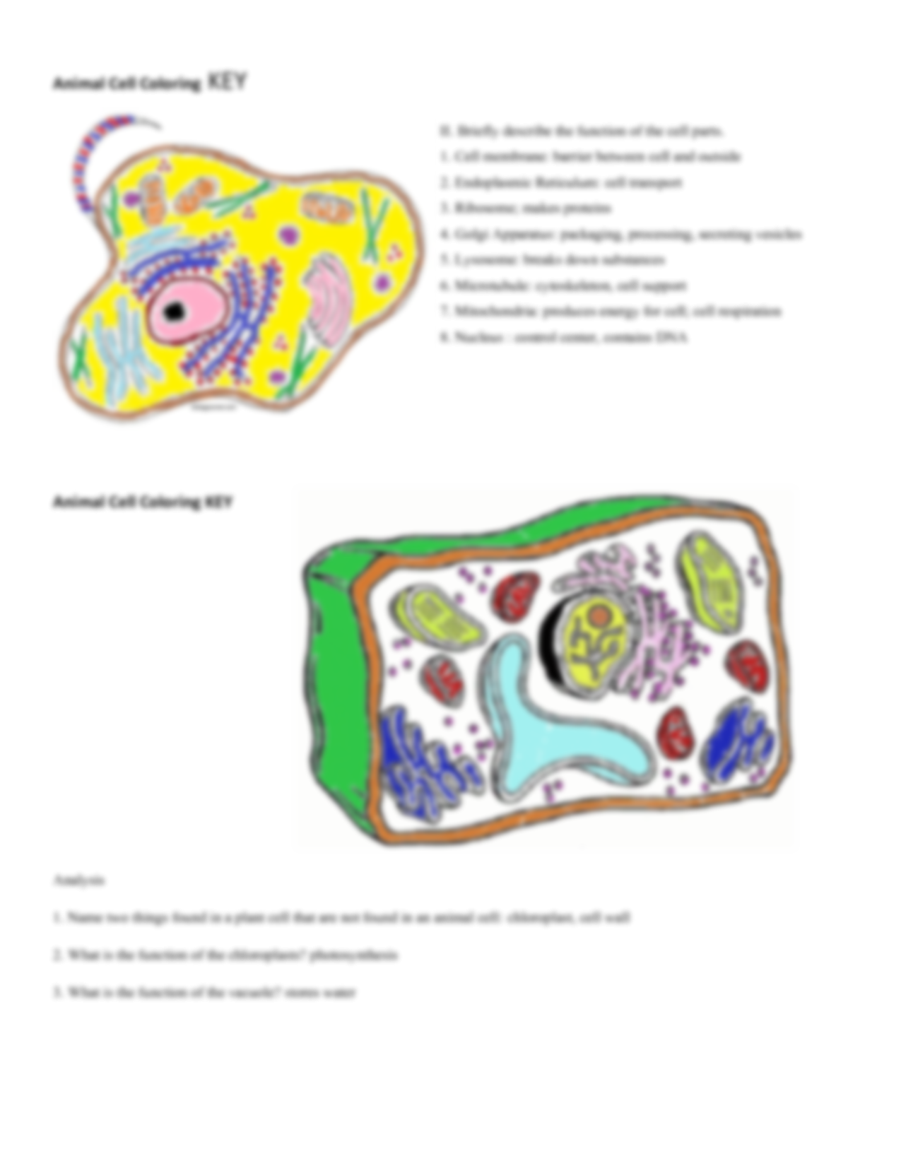 Animal Cell Coloring Key Answers