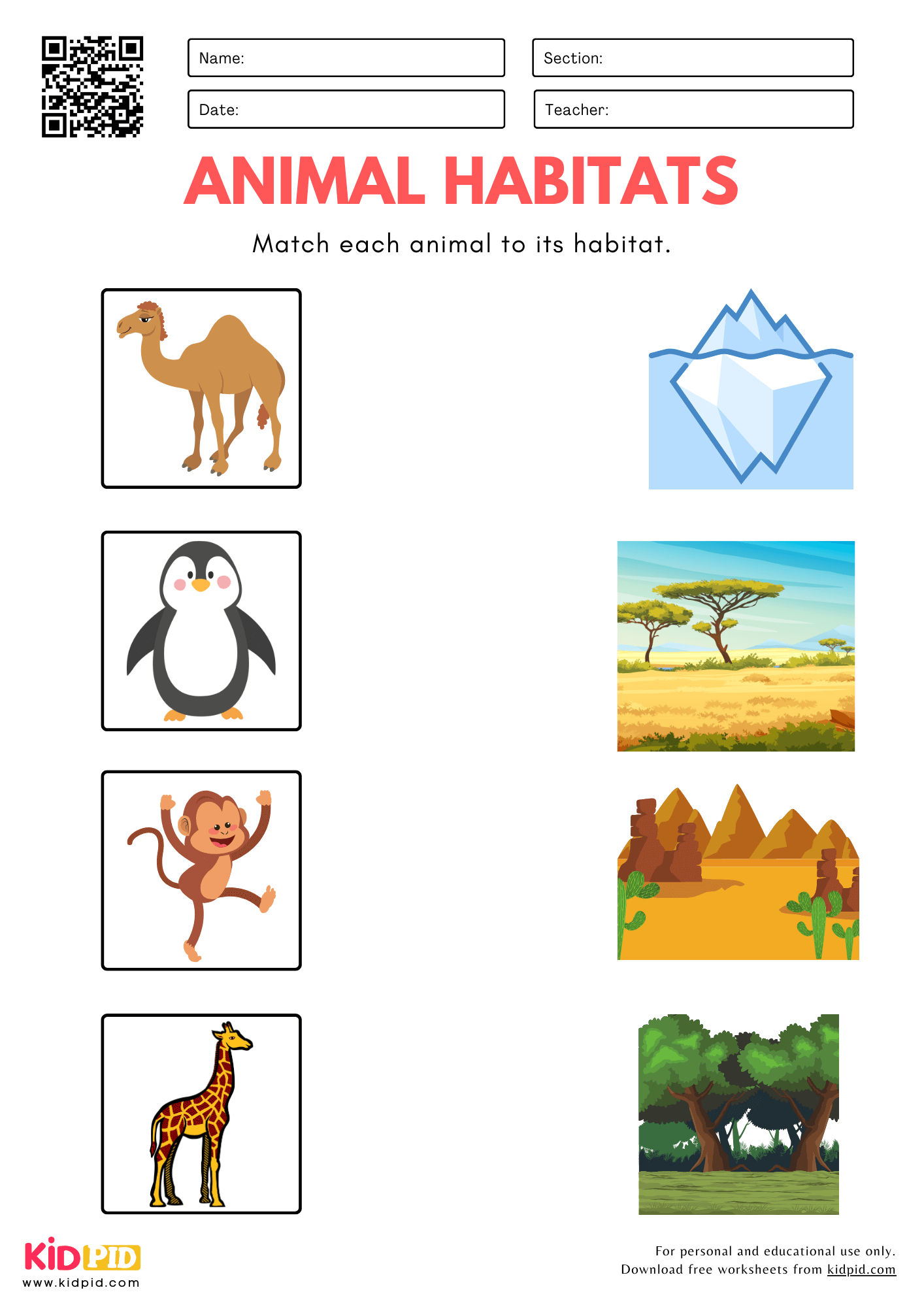 One common type of animal habitats worksheet is a matching activity where students match animals to their respective habitats. This activity not only helps students learn about different habitats but also reinforces their knowledge of specific animal species and their adaptations. Students can also learn about the characteristics of each habitat, such as the climate, vegetation, and other environmental factors that influence the animals that live there.