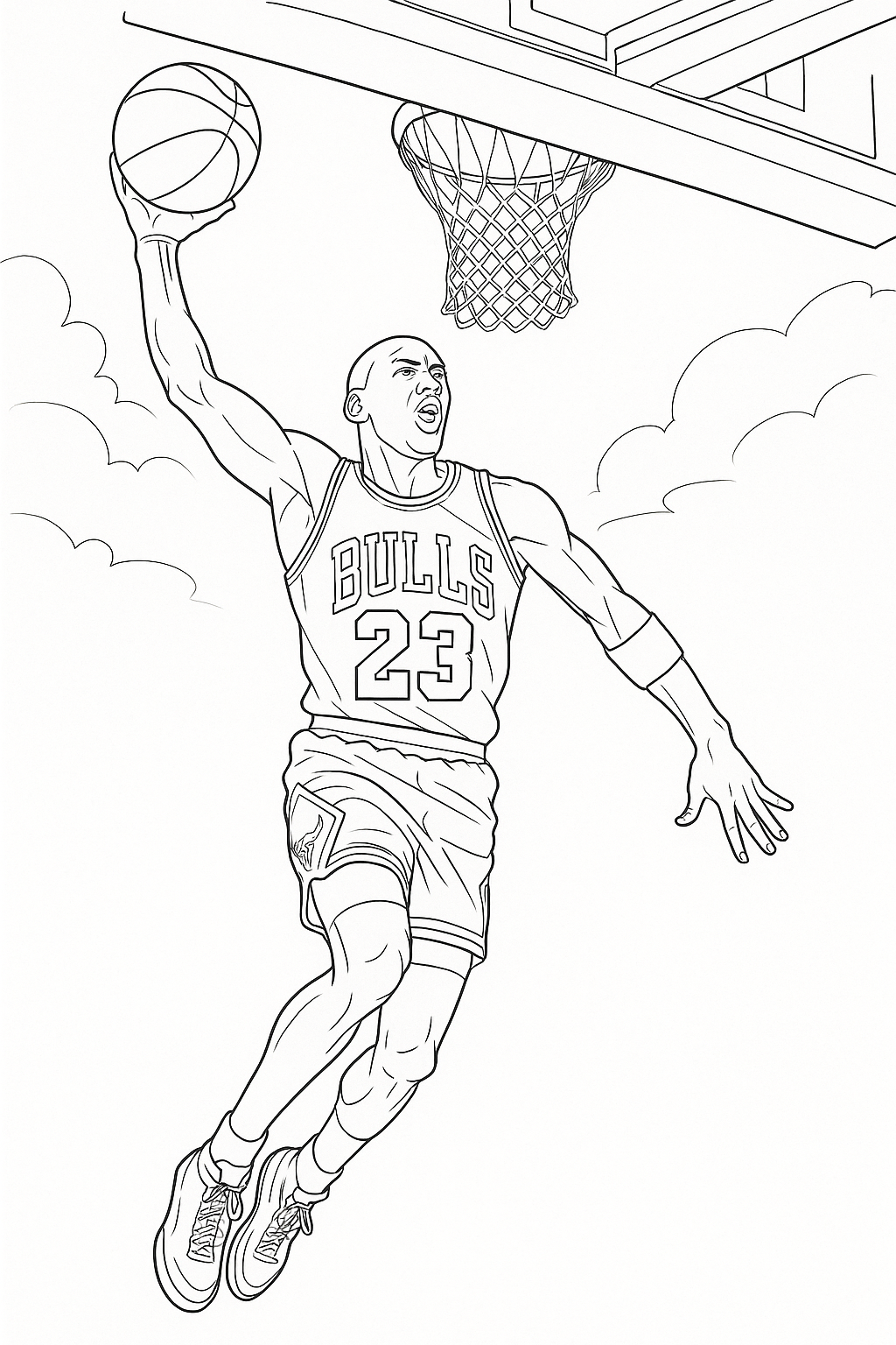 One popular basketball coloring page features a player dunking the ball in mid-air. This action-packed image can be a fun challenge to color, as you can experiment with different shades and textures to bring the scene to life. Another popular option is a simple basketball hoop and net, perfect for those who enjoy the simplicity of the game.
