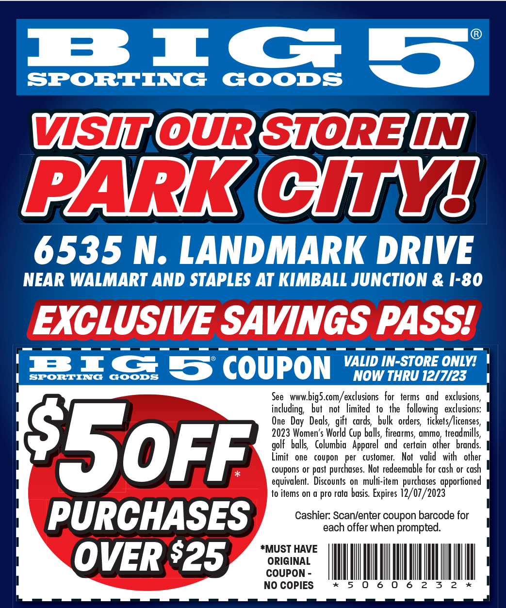 5 Off Purchases Over 25 Big 5 Sporting Goods Park City Guide Coupon Book