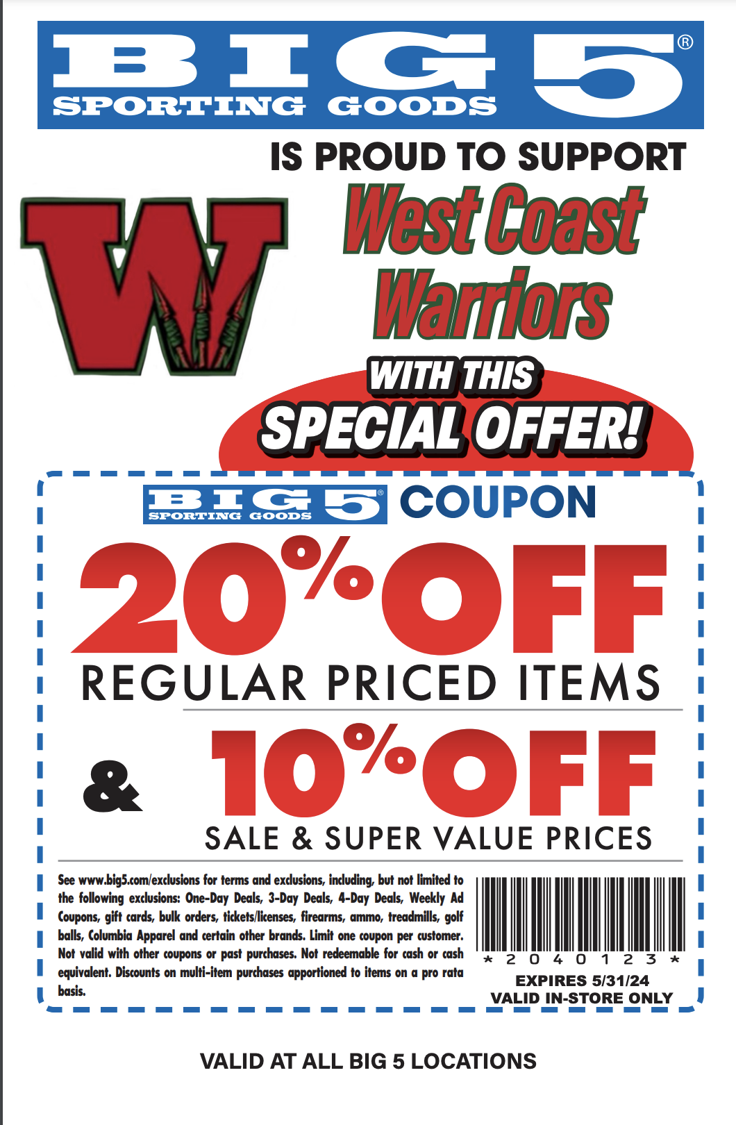 West Coast Warriors Announcement Big 5 Sporting Goods Coupon