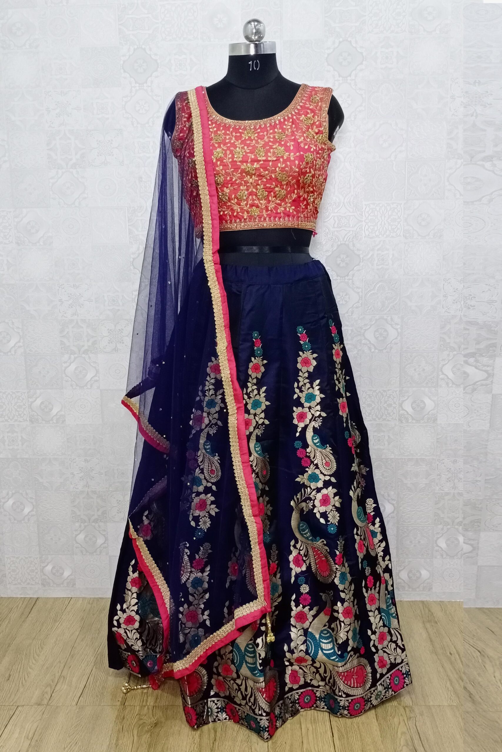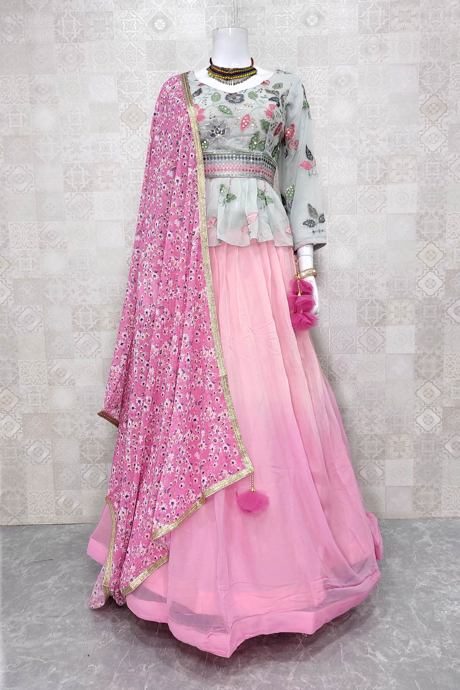 Sky Blue And Pink Color Combination Party Wear Designer Lehenga