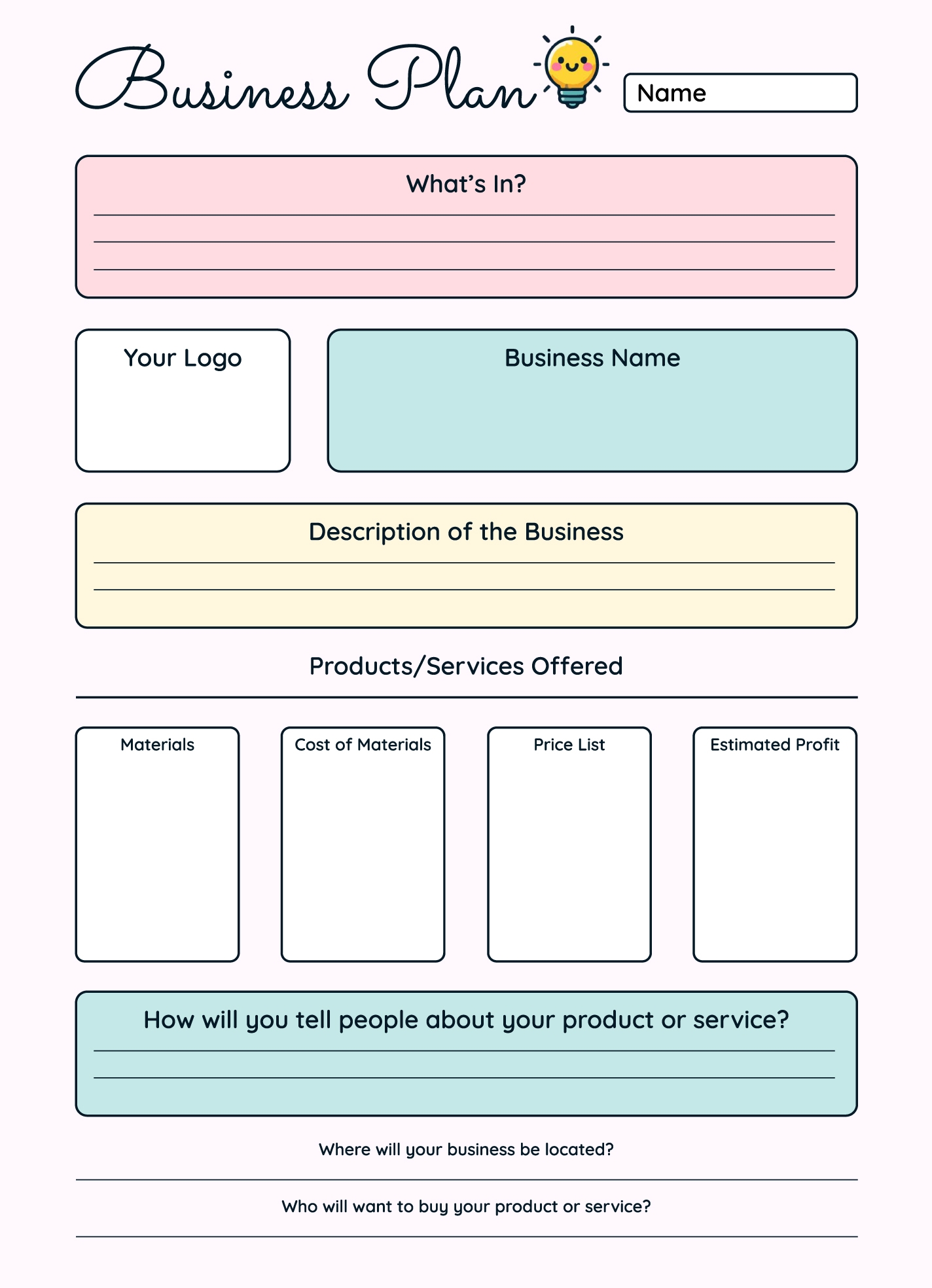 Key Components of a Business Plan for Kids Template