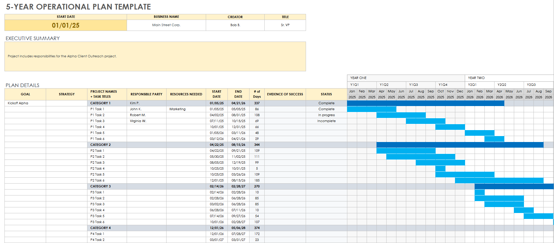 4. Implementation Timeline: Create a detailed timeline that outlines the specific tasks and milestones that need to be achieved to implement your operational plan. Assign responsibilities to team members and set deadlines to ensure accountability and track progress towards your goals.