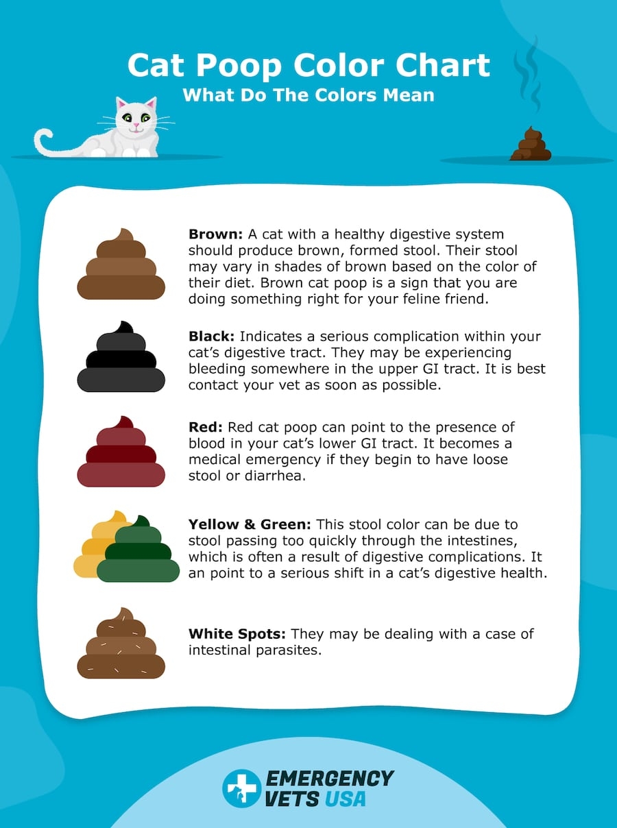 Overall, monitoring your cat’s poop color can provide valuable insights into their health and help you detect any potential issues early on. If you notice any concerning changes in your cat’s poop color, it is best to consult with a veterinarian to rule out any underlying health problems and ensure your cat’s well-being.