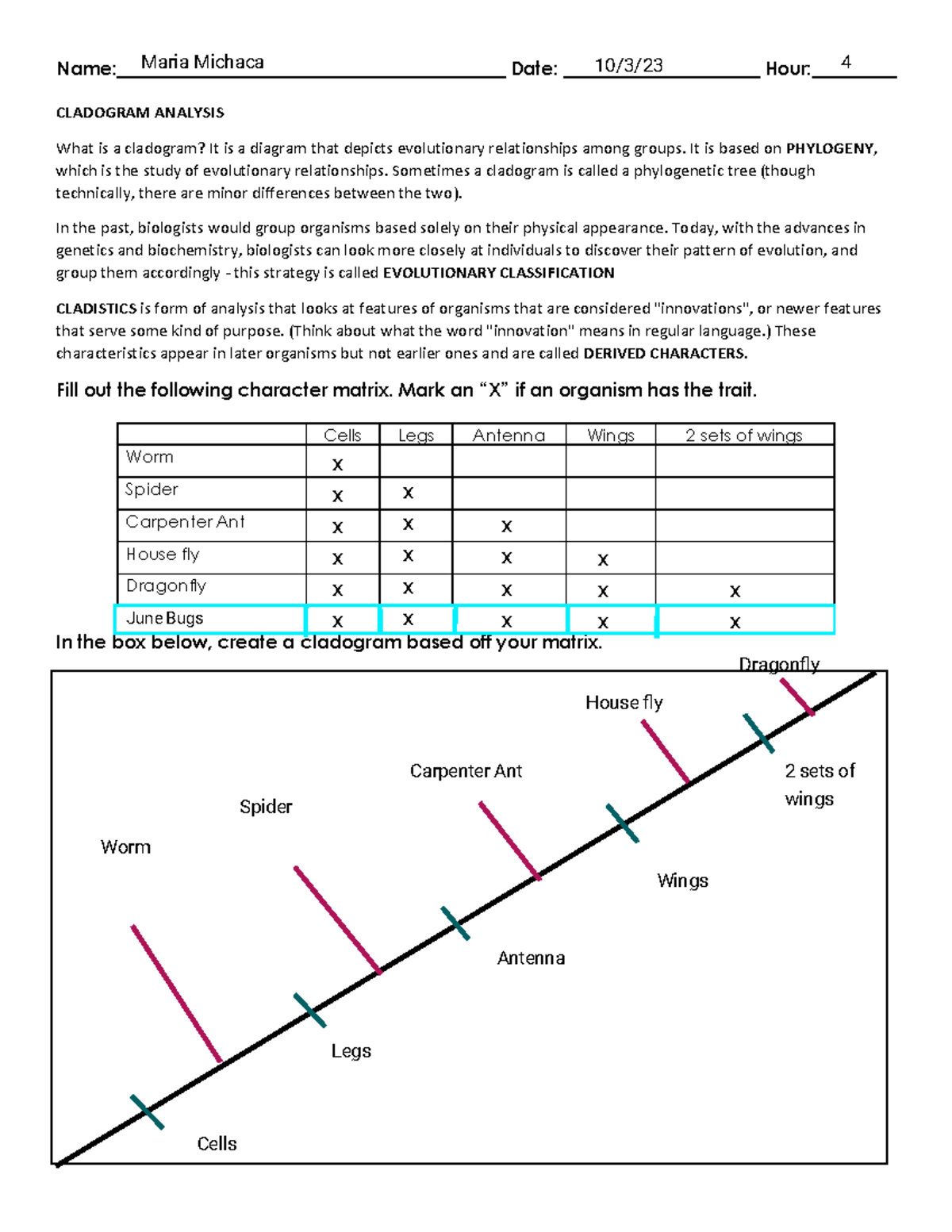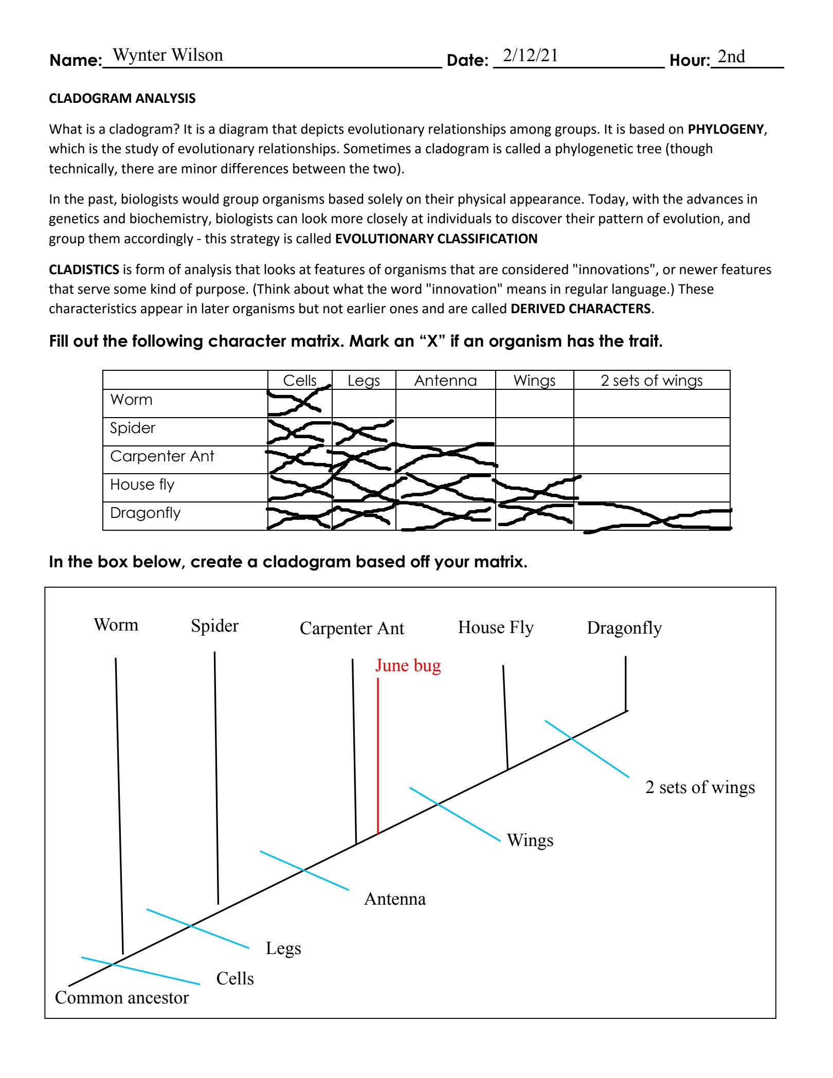 Cladogram Analysis Worksheet
