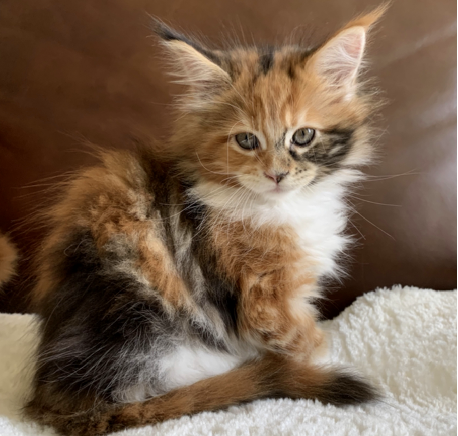 5. Tortoiseshell: This unique color pattern features a mix of black, red, and sometimes cream colors in a patchy, mottled appearance. Tortoiseshell Maine Coon cats are known for their sassy personalities to match their colorful coats.