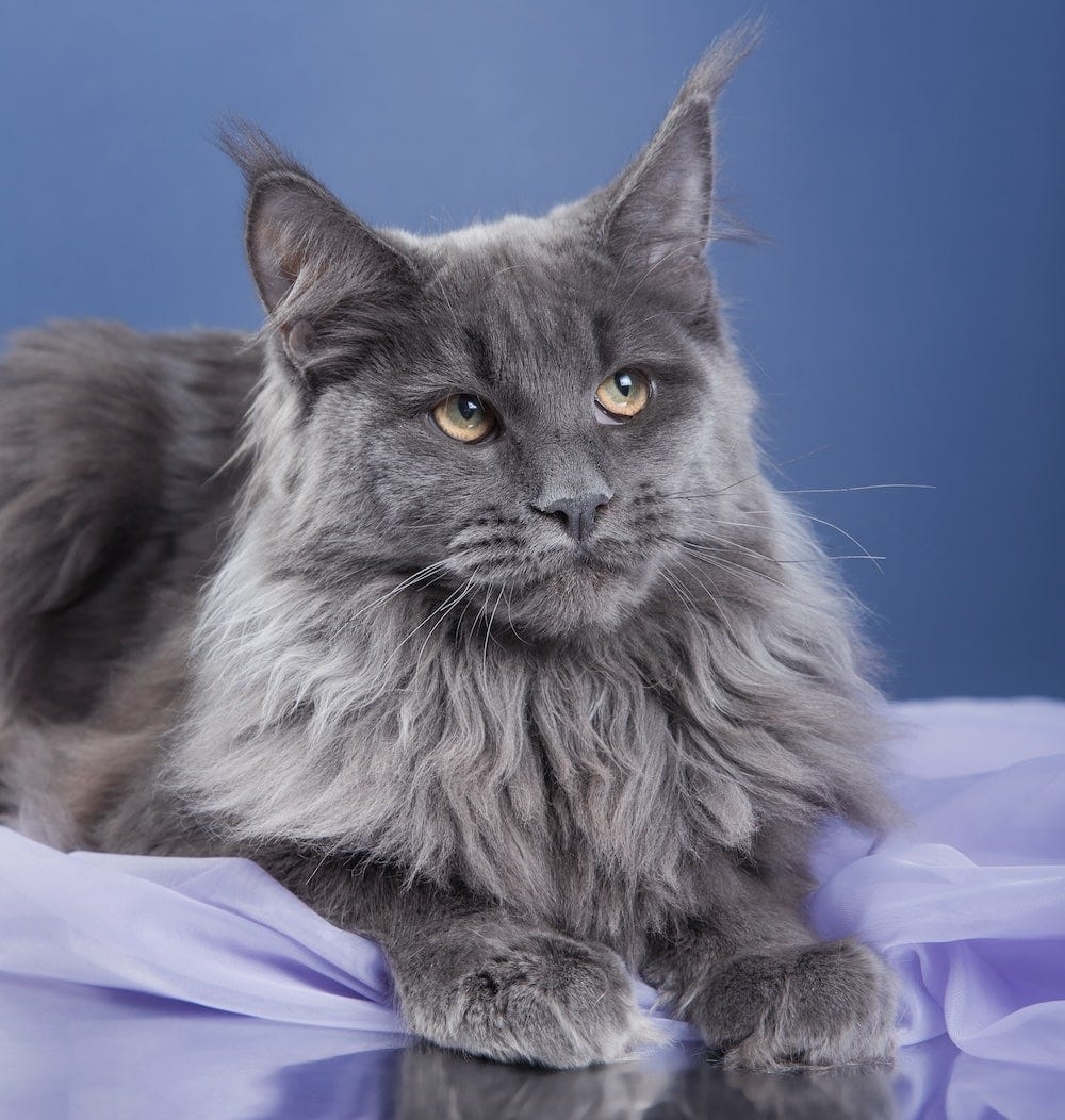 3. Blue: Blue Maine Coon cats have a soft, silvery-grey coat that gives them a regal appearance. This color is less common but highly sought after by cat enthusiasts.
