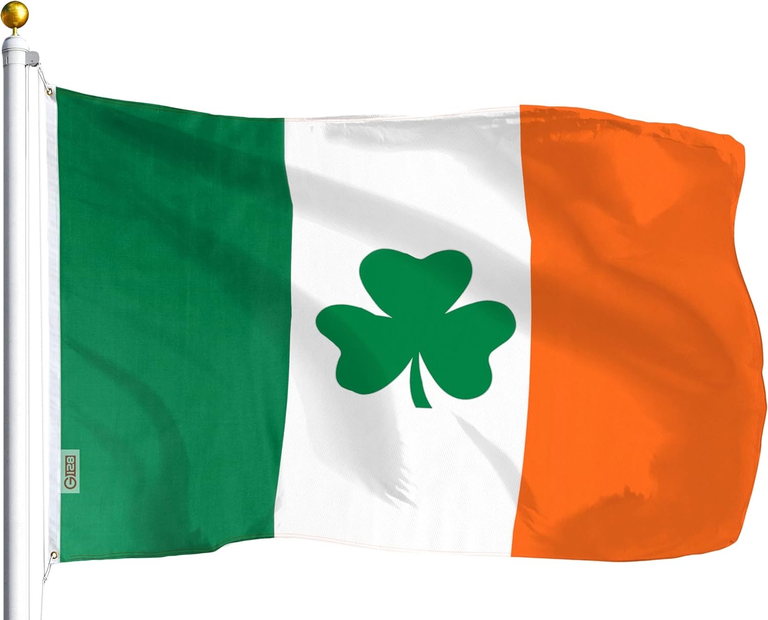 G128 Irish Flag Shamrock 3x5 Feet Embroidered Ireland Vibrant Colors Brass Grommets Quality Polyester