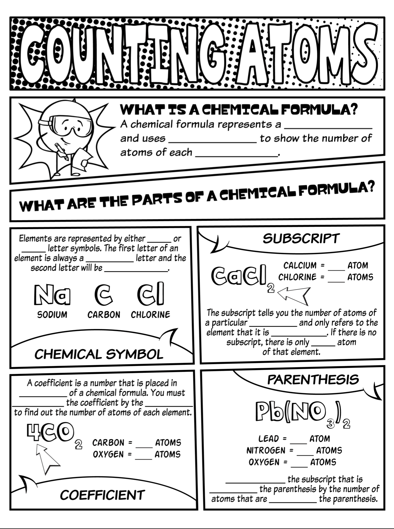 By completing a counting atoms worksheet, students can improve their understanding of chemical formulas, as well as their ability to apply the rules of counting atoms in different compounds. This practice can help reinforce key concepts in chemistry and prepare students for more complex problems in the future.