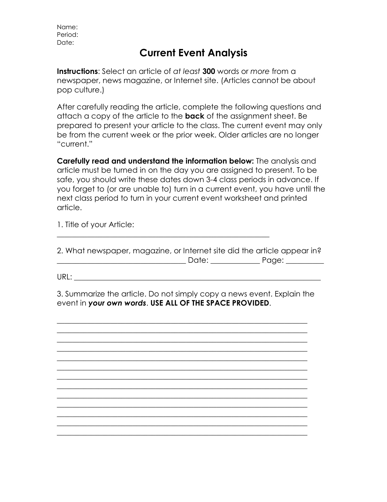One key component of a current events template is a section for summarizing the main points of an article or news story. This can help you quickly understand the key takeaways without having to read through the entire piece. Additionally, a template may include space for noting the source of the information, allowing you to verify the credibility of the news source.