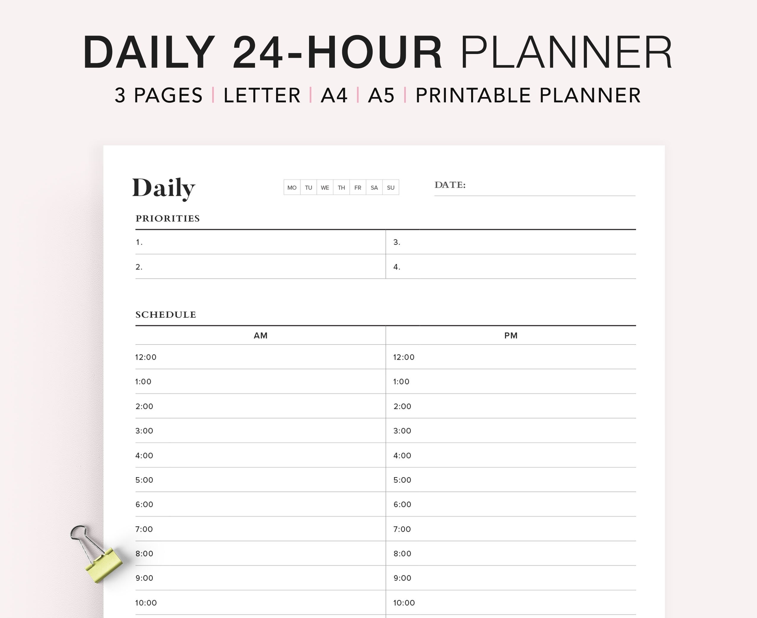 Daily Hourly Planner Printable