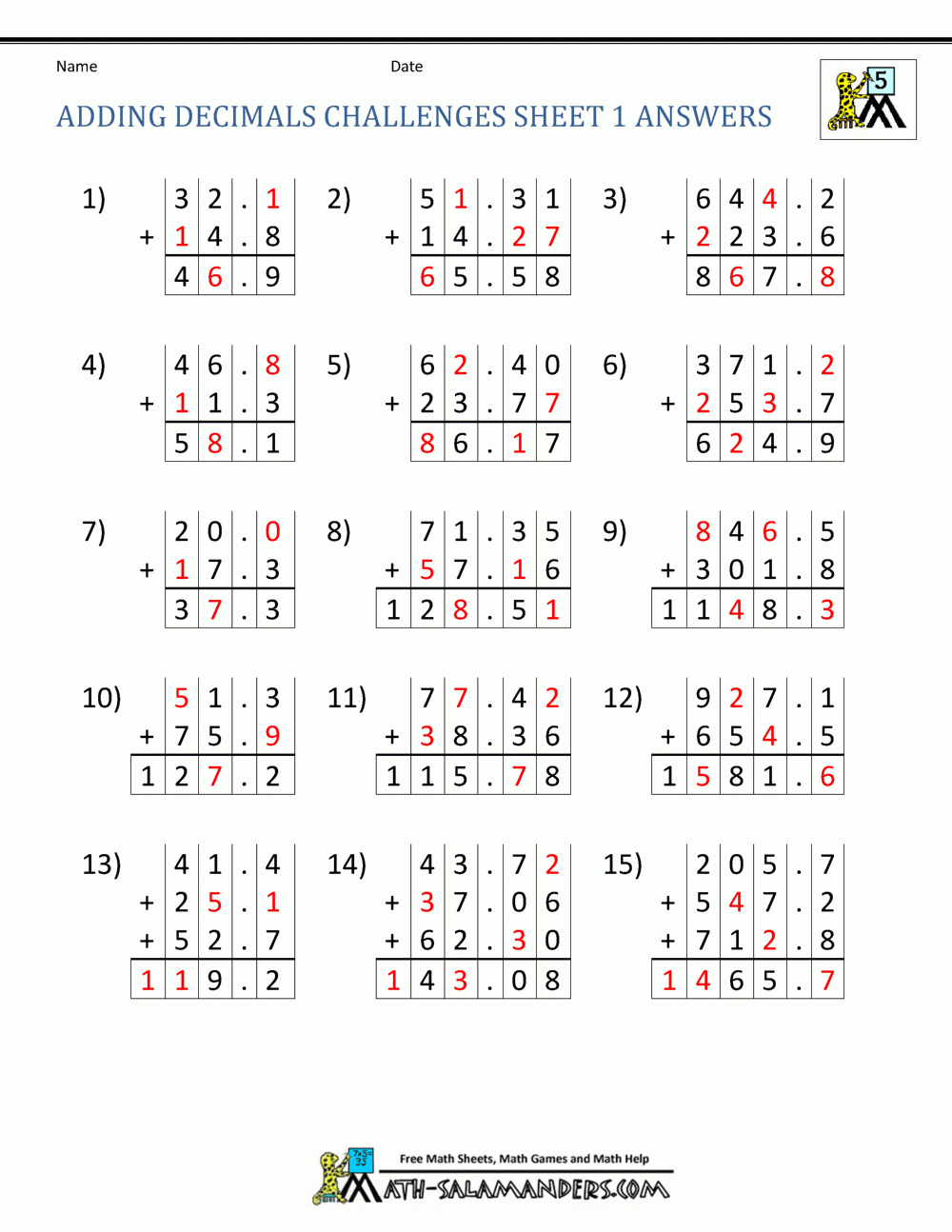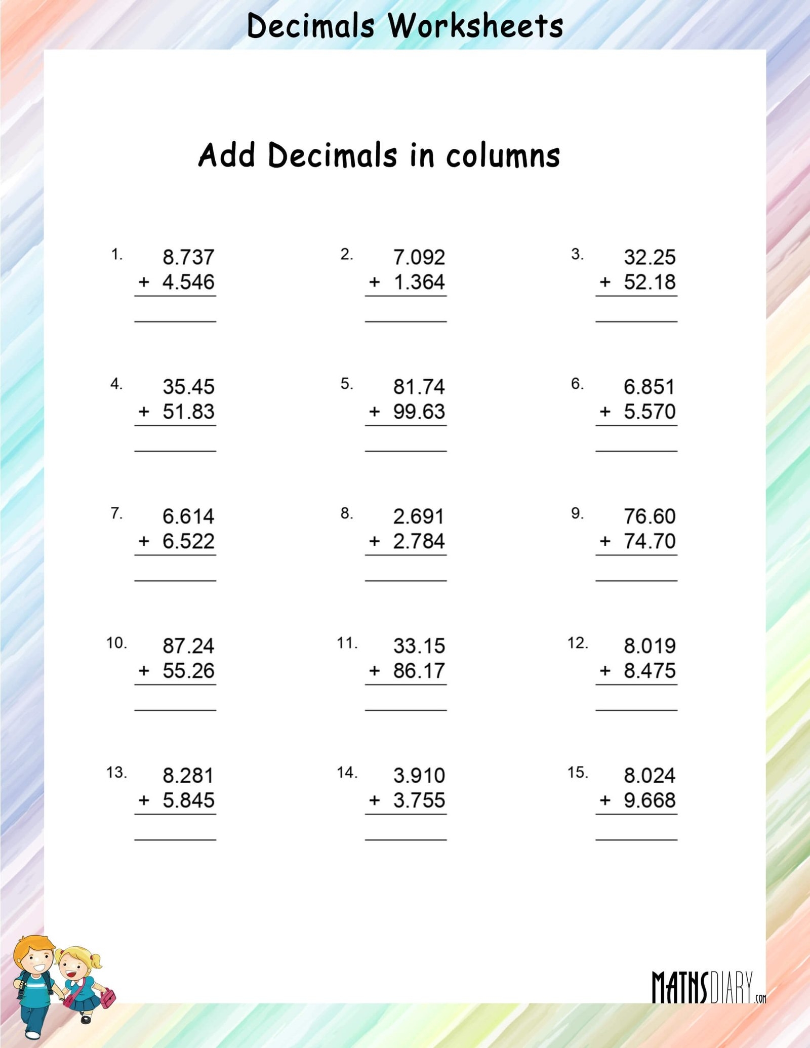 Decimal addition can be a challenging concept for students to grasp, but with the help of worksheets, they can practice and improve their skills in this area. These worksheets provide a structured way for students to practice adding decimals and build confidence in their abilities.