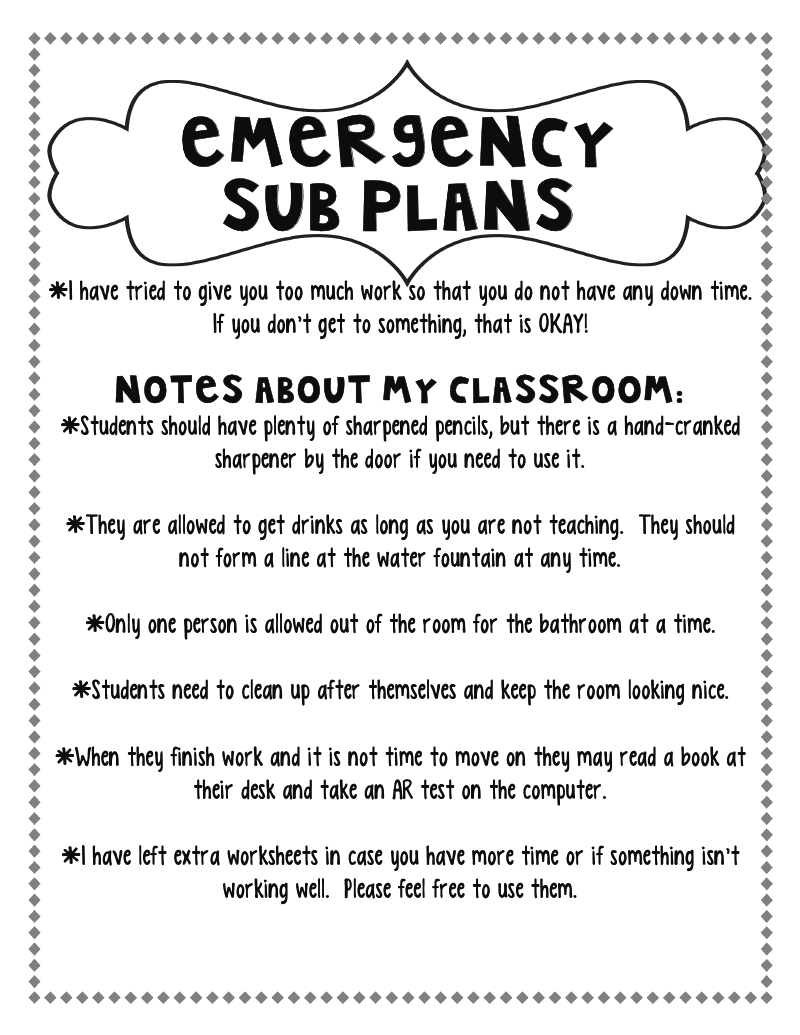 5. Emergency Procedures: Include information on emergency procedures, such as evacuation routes and procedures for handling medical emergencies, so that your substitute teacher is prepared to respond in case of an emergency.