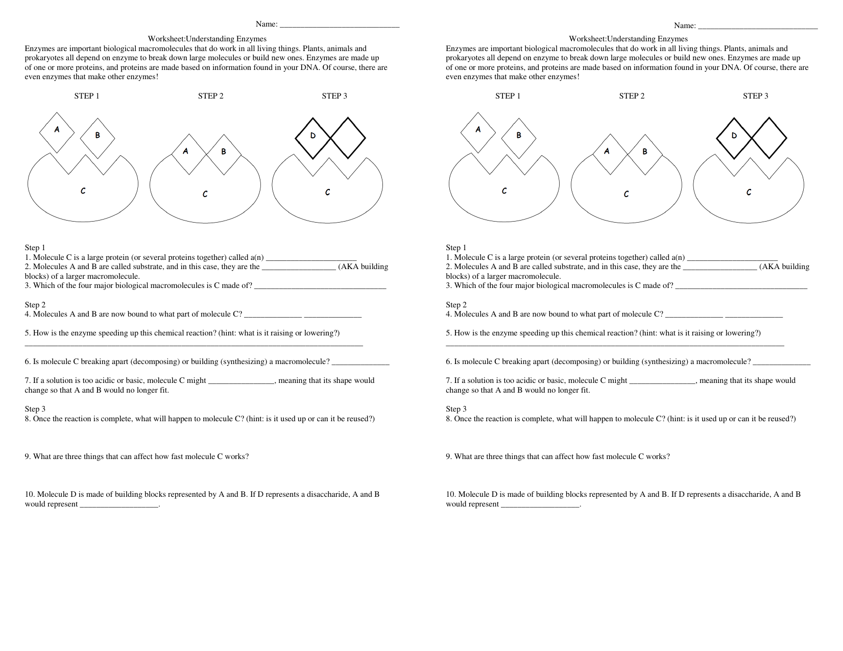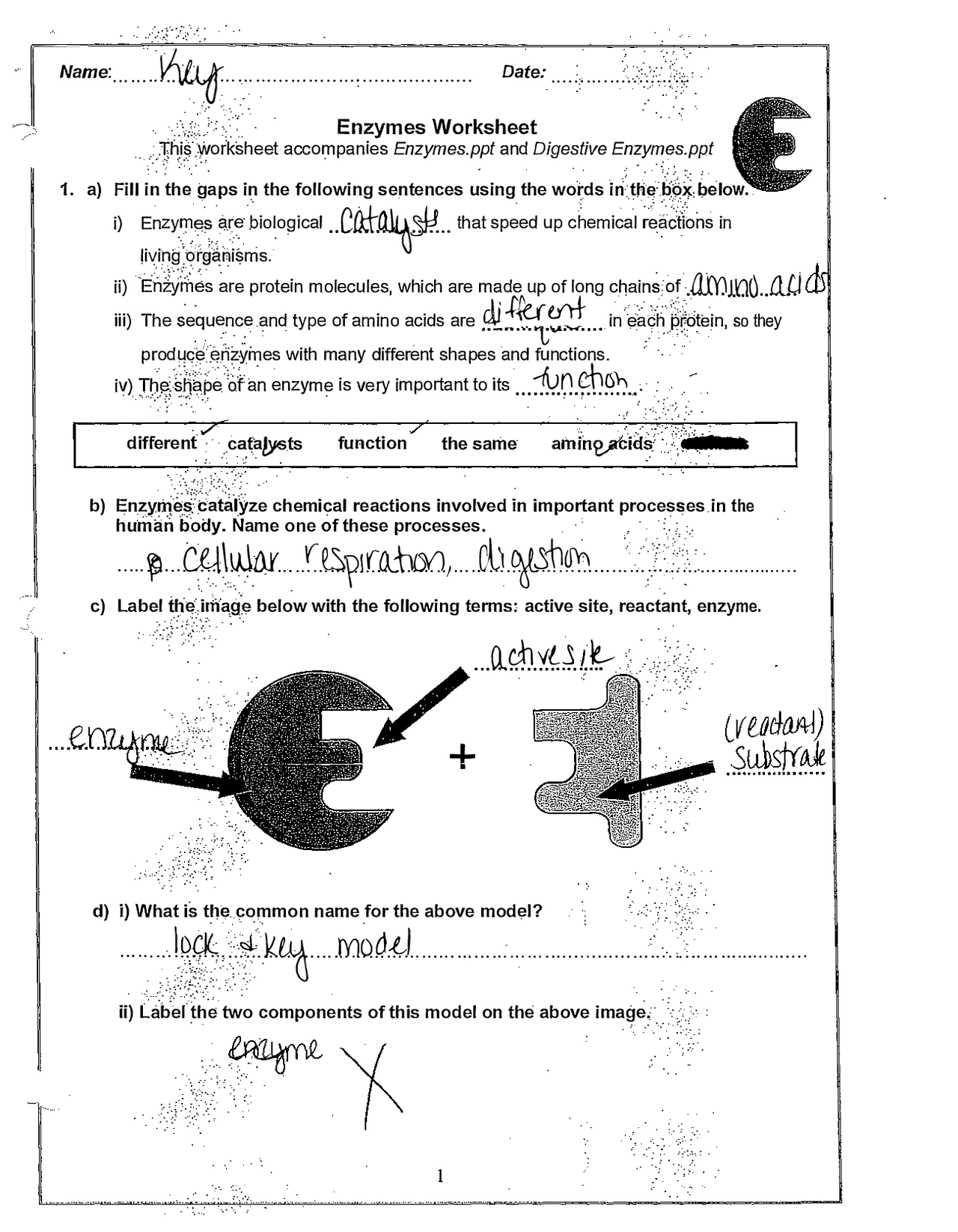 Enzyme Worksheet