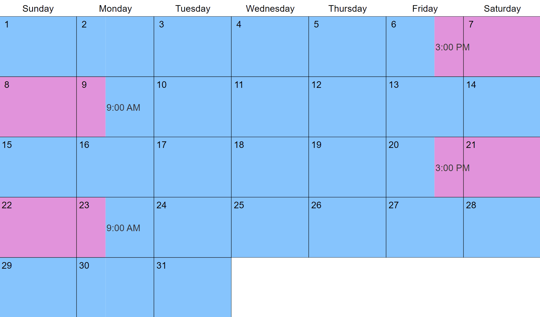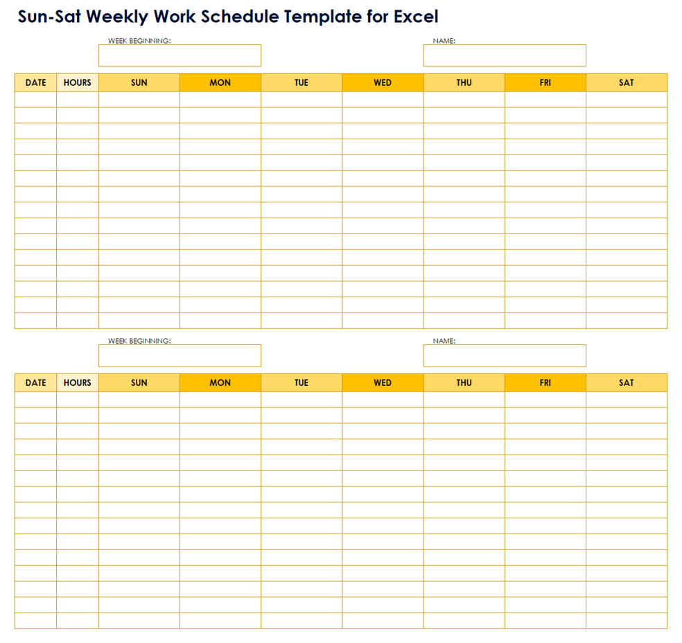 Every Other Weekend Schedule Template