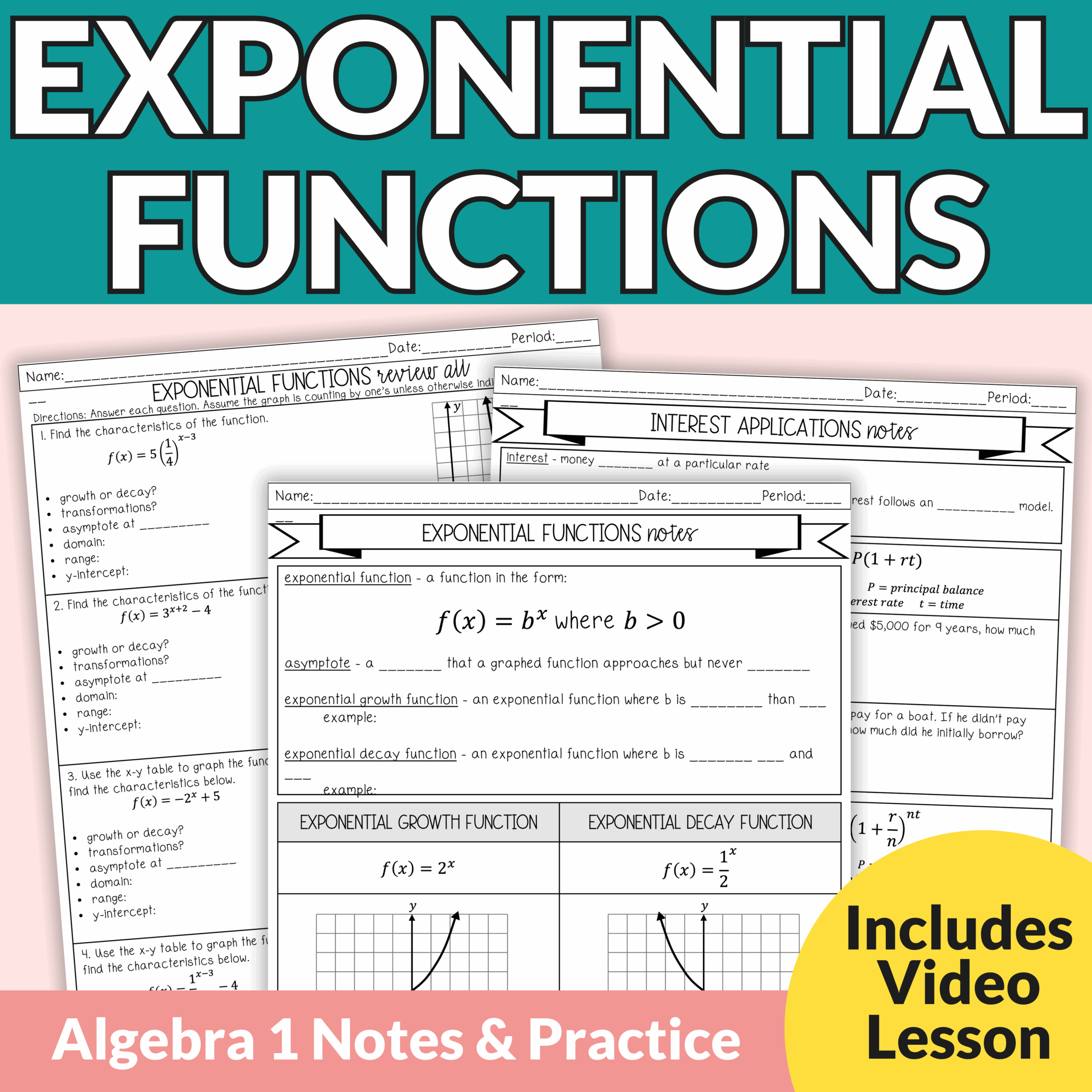 Exponential Functions Notes And Worksheets For 8th 11th Grade Algebra 1 Lindsay Bowden