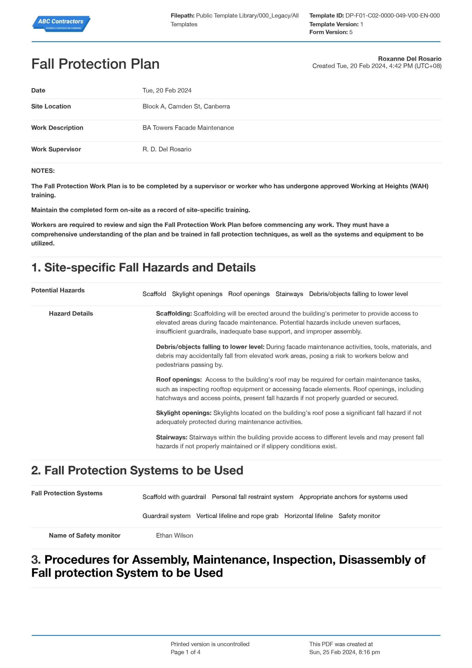 2. Rescue Procedures: Outline detailed rescue procedures in the event of a fall. This should include information on how to access the fallen worker, the equipment needed for the rescue, and the training requirements for rescue personnel. It is crucial to practice these rescue procedures regularly to ensure a swift and effective response.