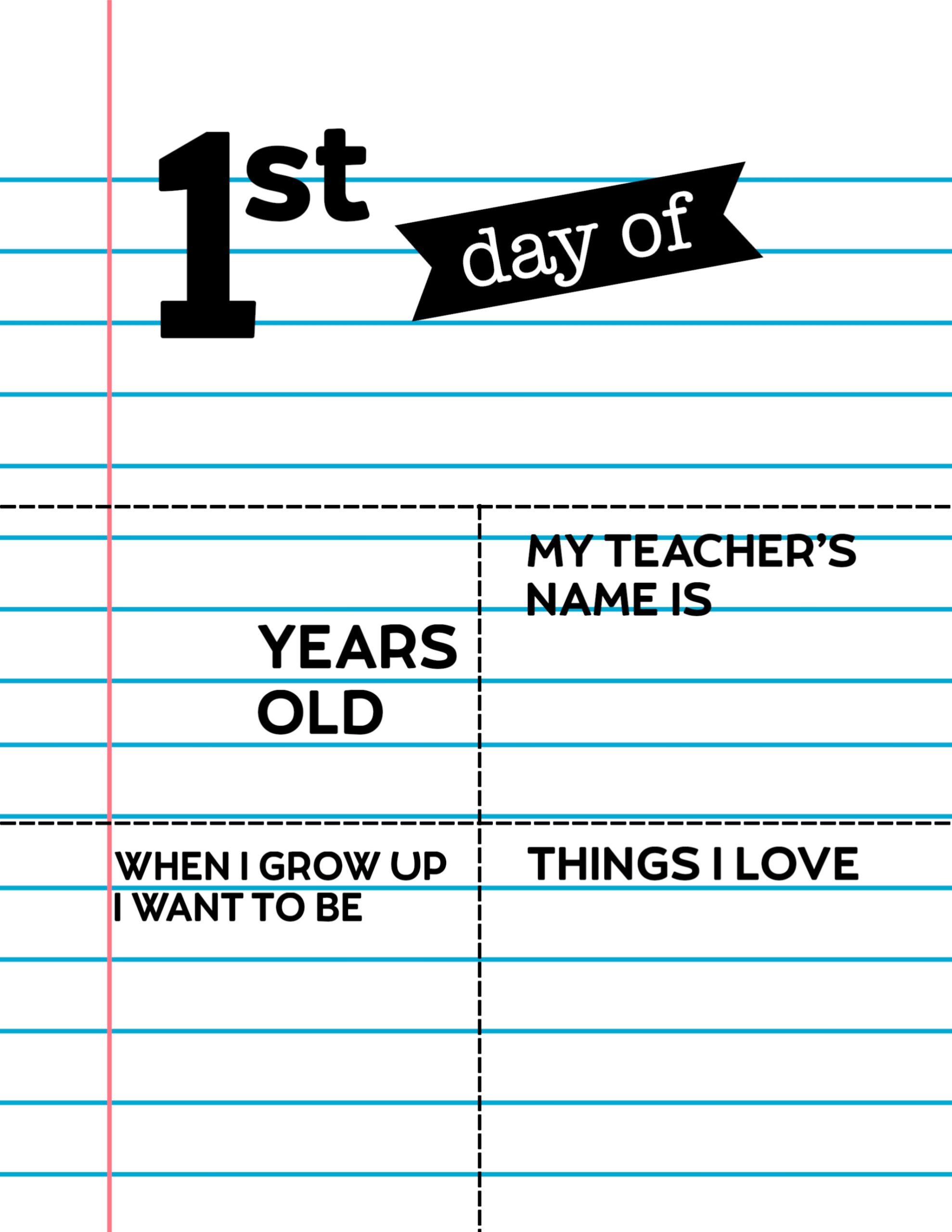 One popular printable for the first day of school is a customizable “First Day of School” sign. These signs typically feature spaces for the child’s name, grade, age, and the date. Parents can print out the sign, fill in the information, and have their child hold it up for a photo on the first day of school. It’s a fun and easy way to capture the excitement of the day and create a lasting memory.