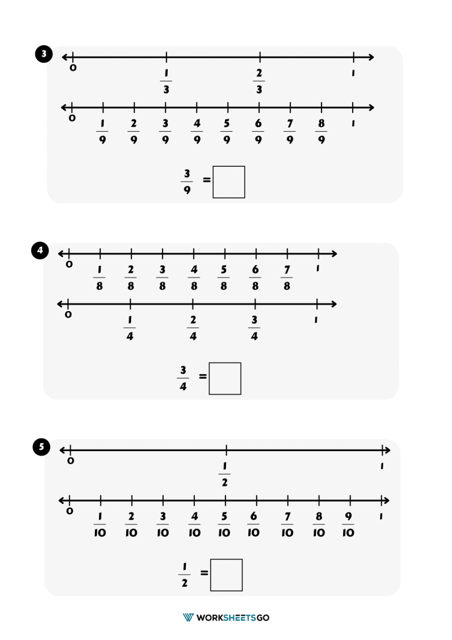 These worksheets not only help students practice their fraction skills but also reinforce the idea of fractions as parts of a whole. By using number lines, students can better understand the relationship between fractions and whole numbers, making it easier for them to compare and order fractions.