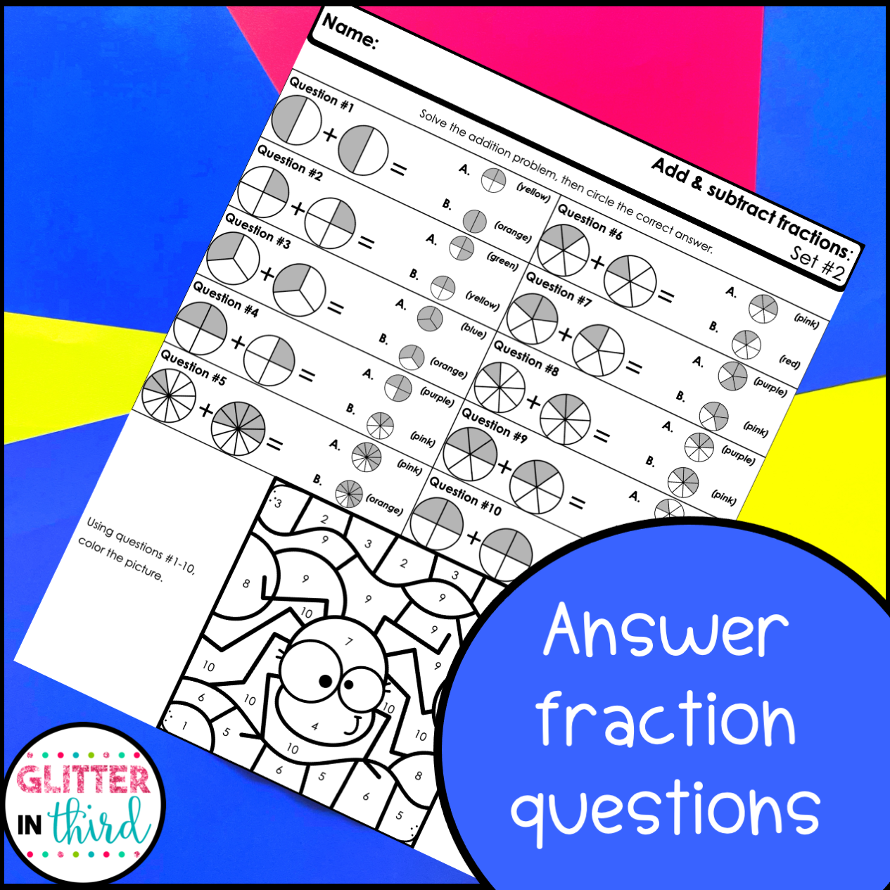 Adding And Subtracting Fractions Color By Number Worksheets