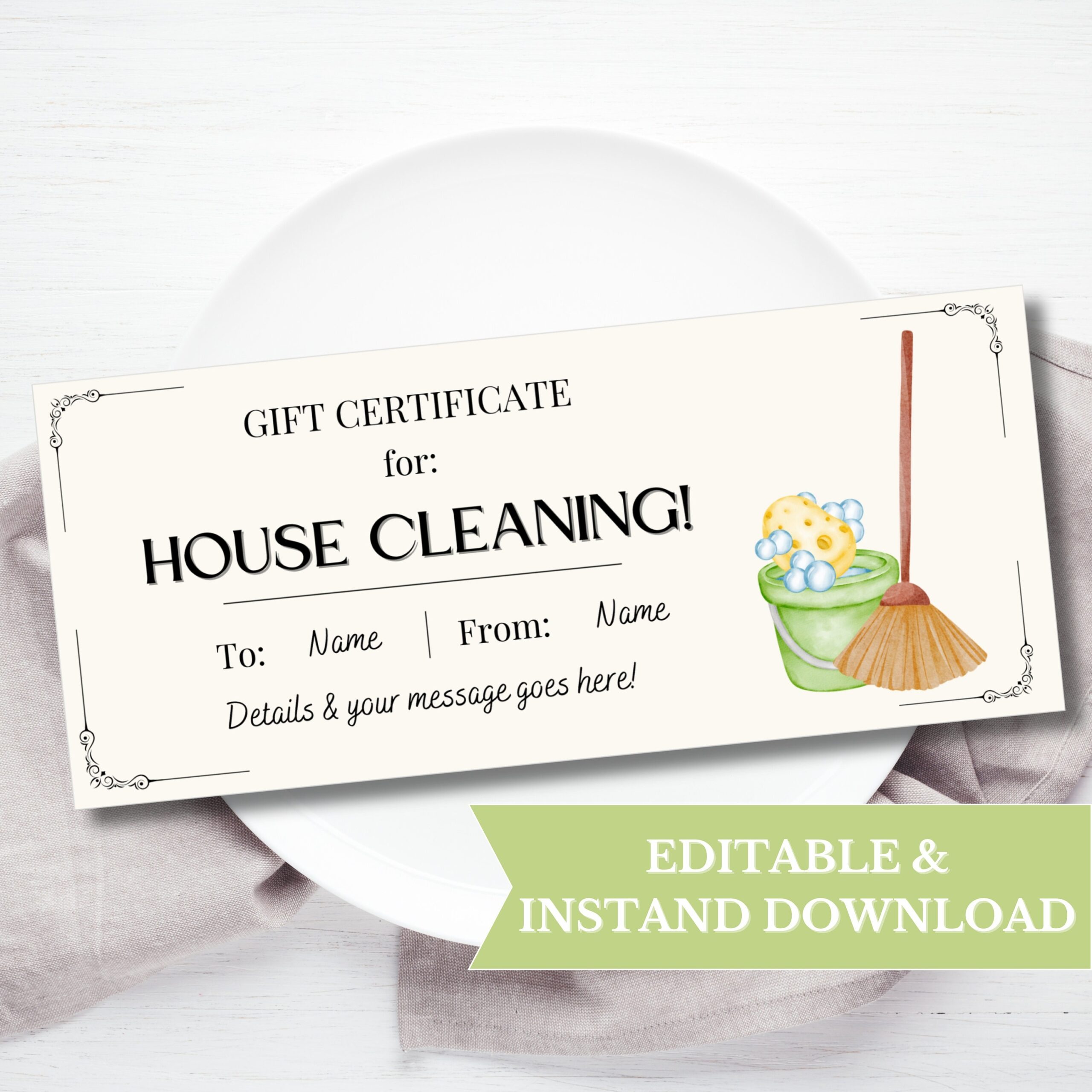 For those looking to give the gift of a clean home, we offer a free printable house cleaning gift certificate template. This template allows you to customize the certificate with your own message and details, making it a personalized gift that shows you care.