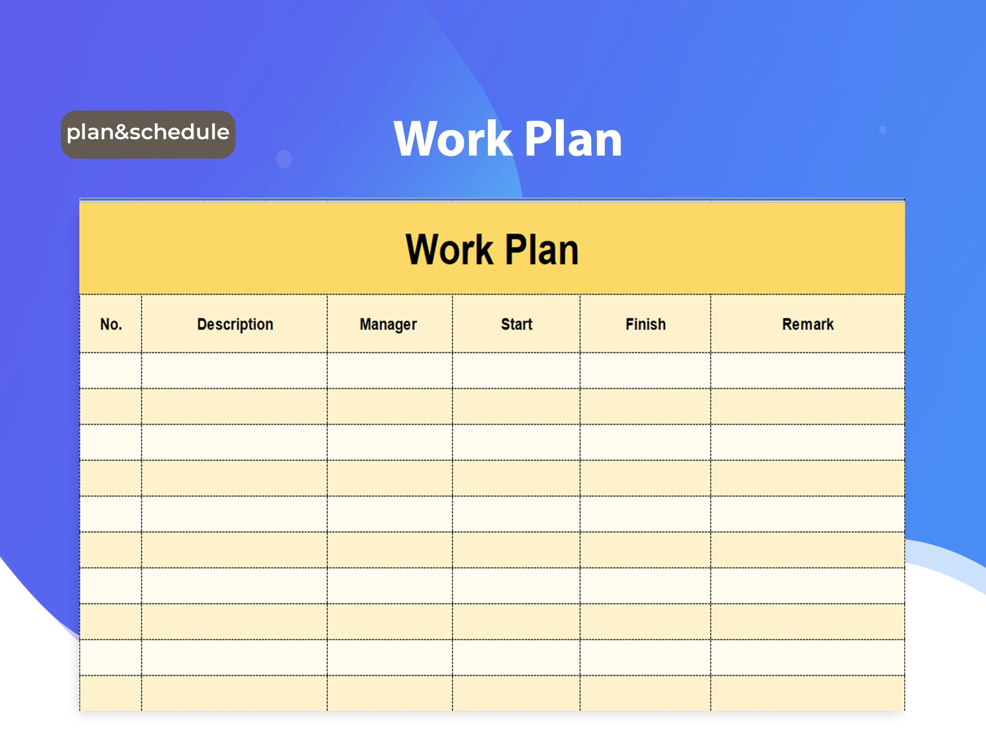 By using this template as a starting point, you can easily create a comprehensive work plan that will guide you through each phase of your project.