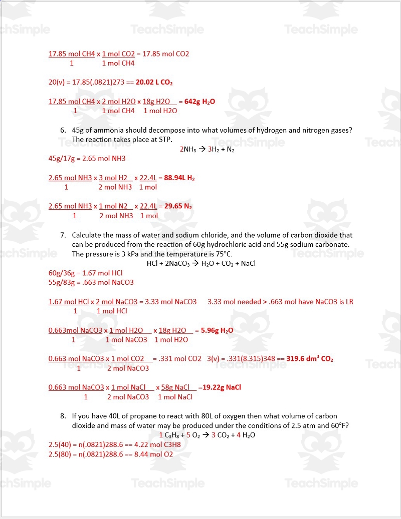 In addition to the ideal gas law and limiting reactants, a gas stoichiometry worksheet may also cover topics such as gas density, molar volume, and stoichiometric calculations. These problems help students practice converting between units, balancing chemical equations, and determining the stoichiometry of a reaction. By working through a variety of problems, students can strengthen their understanding of gas stoichiometry and improve their problem-solving abilities.