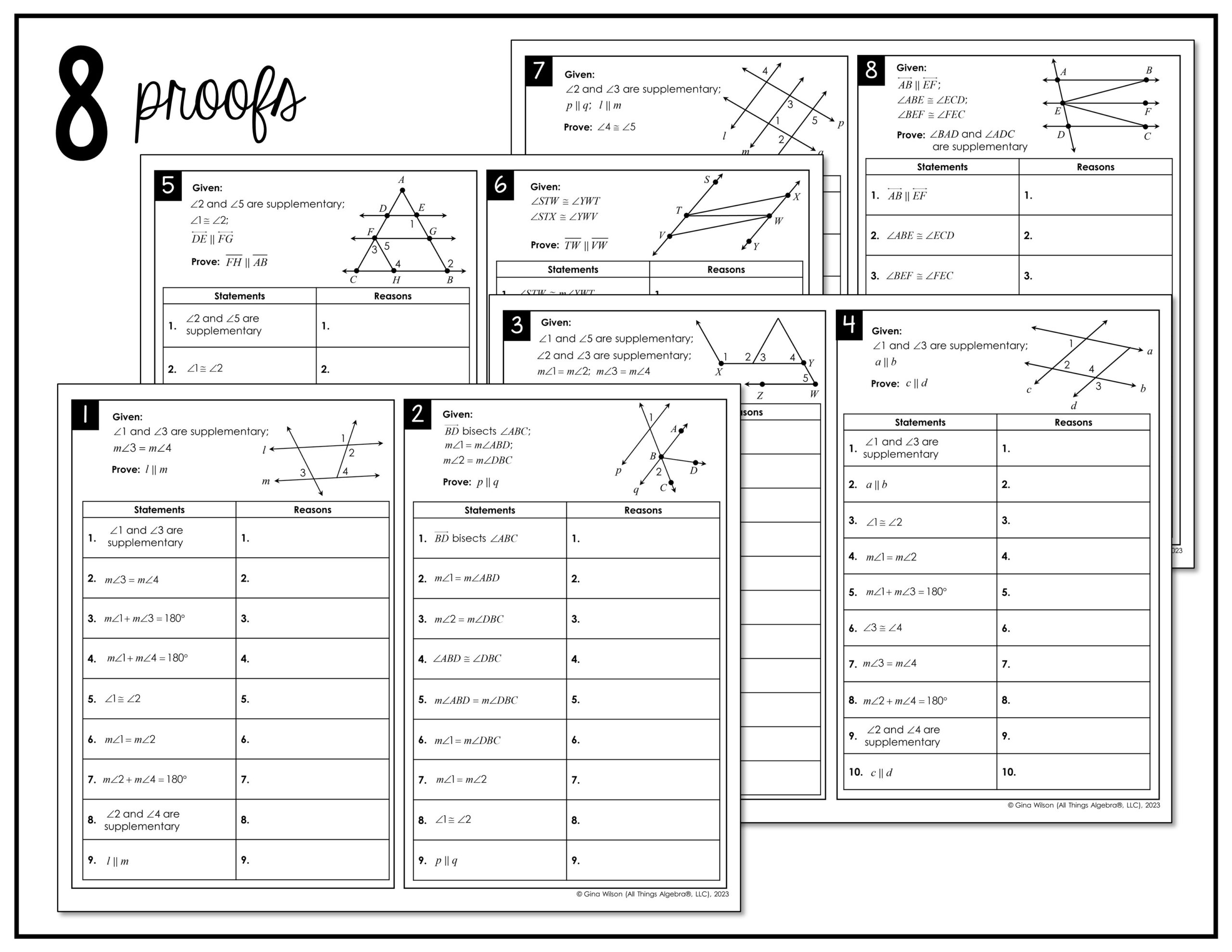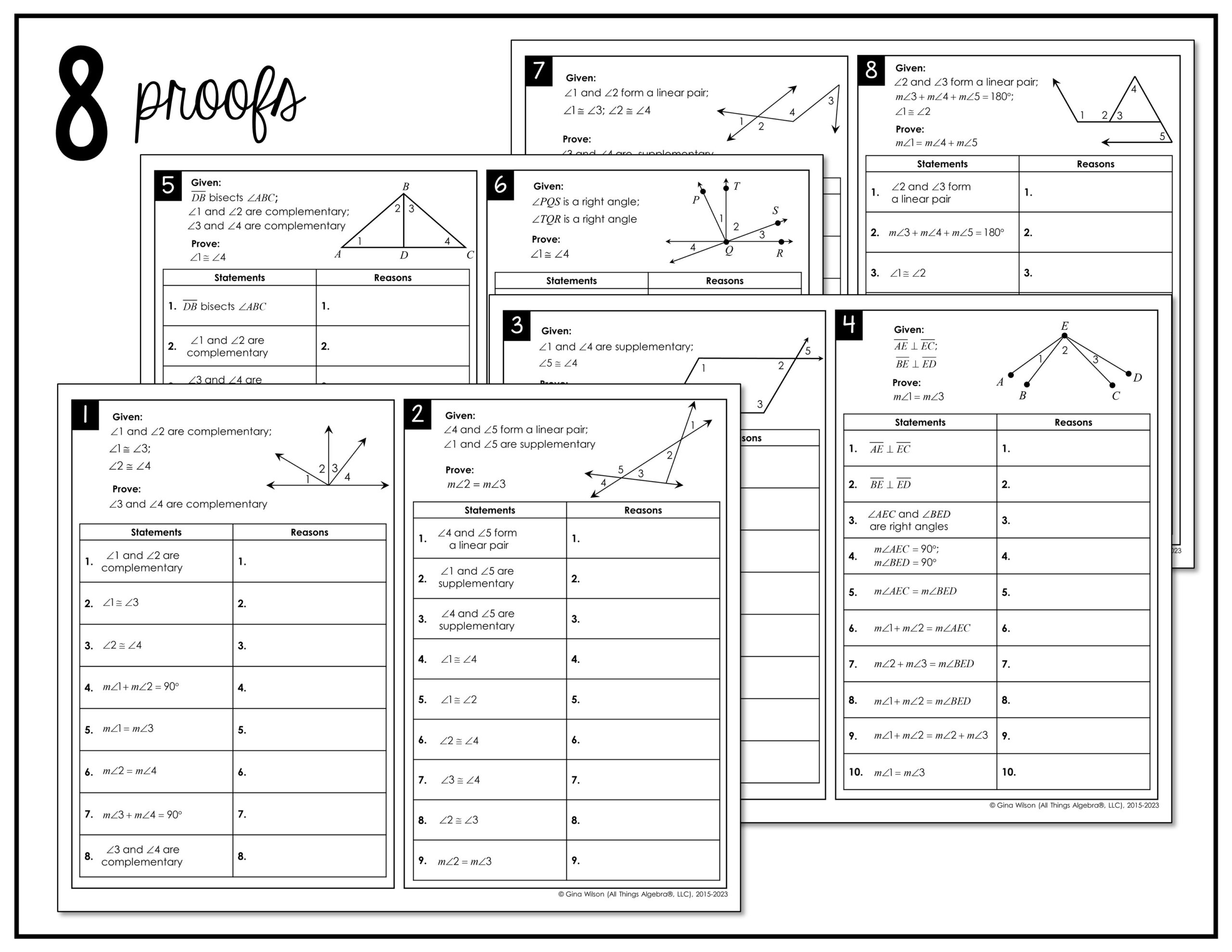 A geometric proofs worksheet is a valuable tool for students to practice their reasoning skills and apply geometric principles to solve problems. By working through a variety of proofs, students can strengthen their understanding of geometry and develop confidence in their ability to solve complex problems.