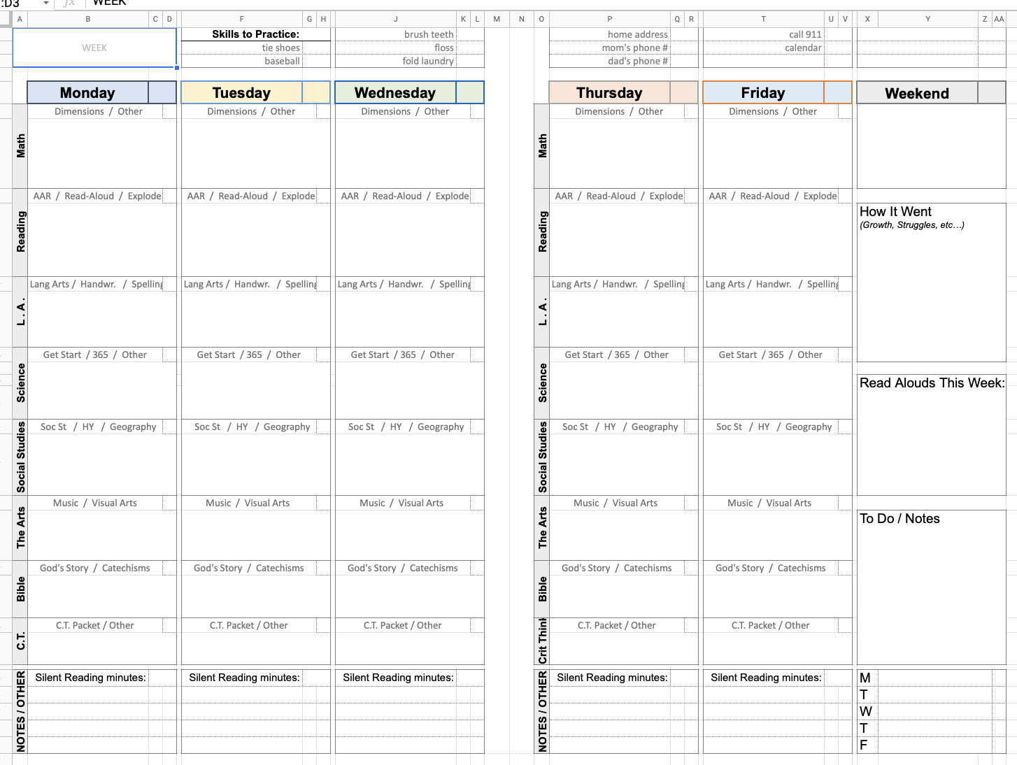 Homeschool Curriculum Planning Template