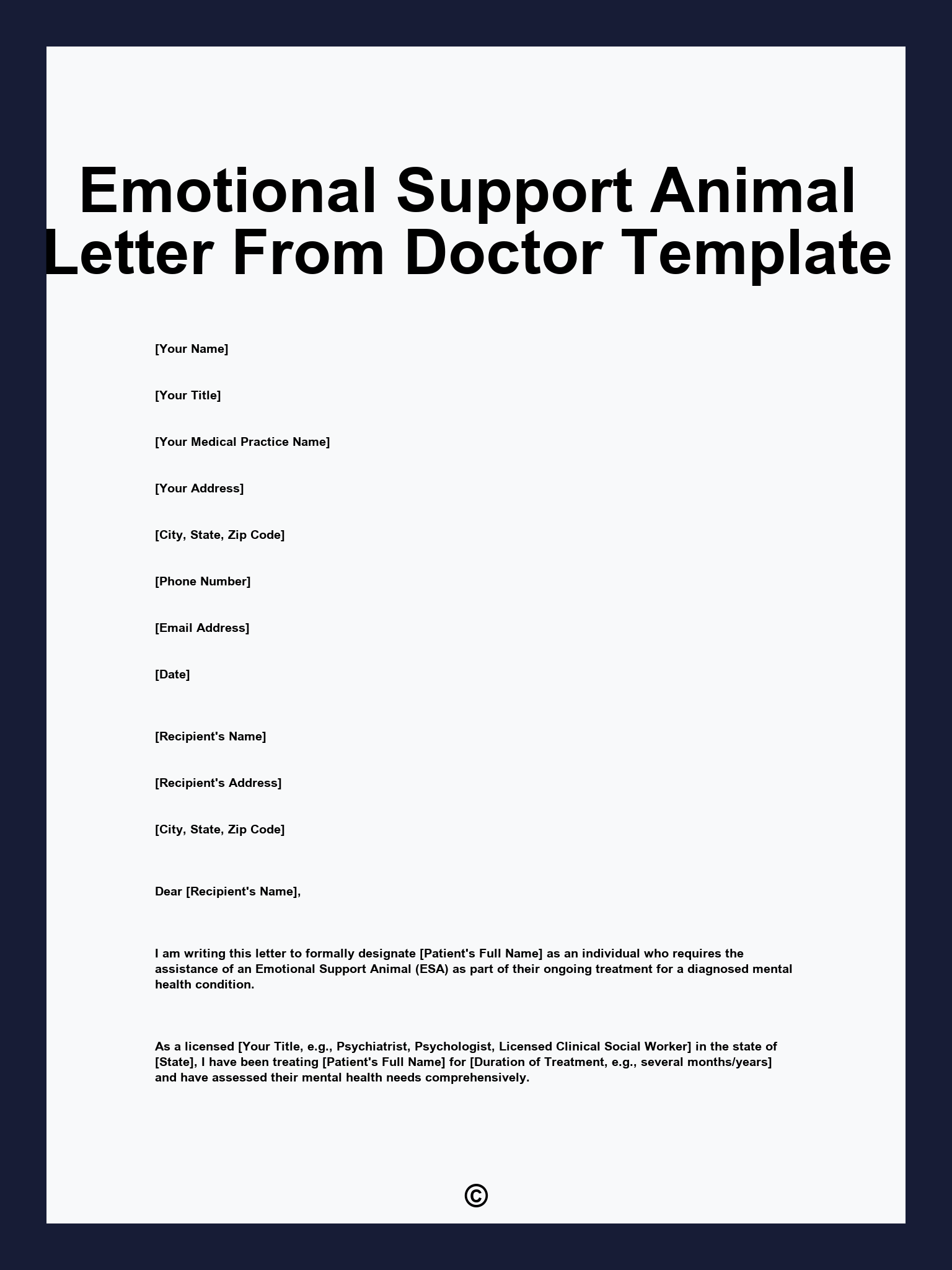 Emotional Support Animal Letter From Doctor Template