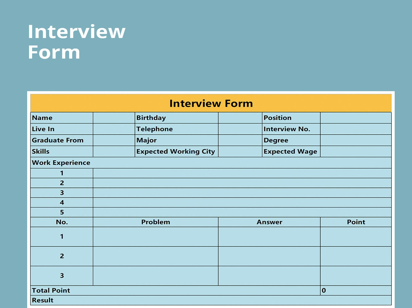 EXCEL Of Free Interview Form xls WPS Free Templates
