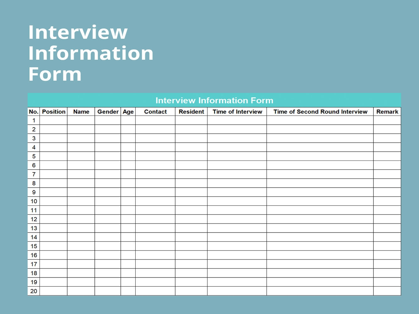 EXCEL Of Interview Information Form xls WPS Free Templates