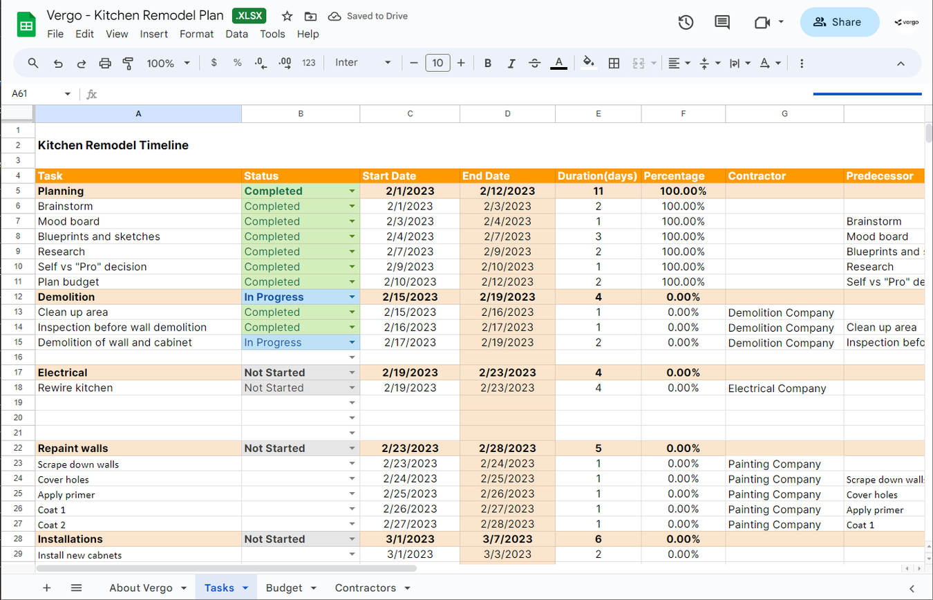 Kitchen Renovation Project Plan Template