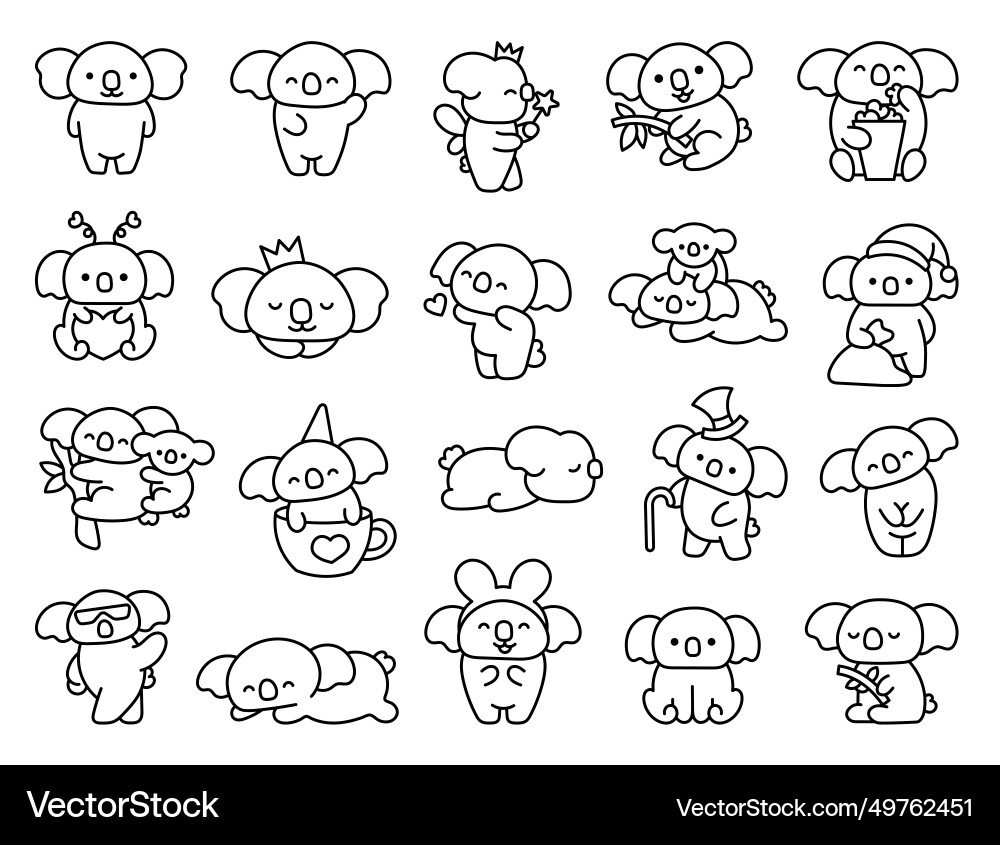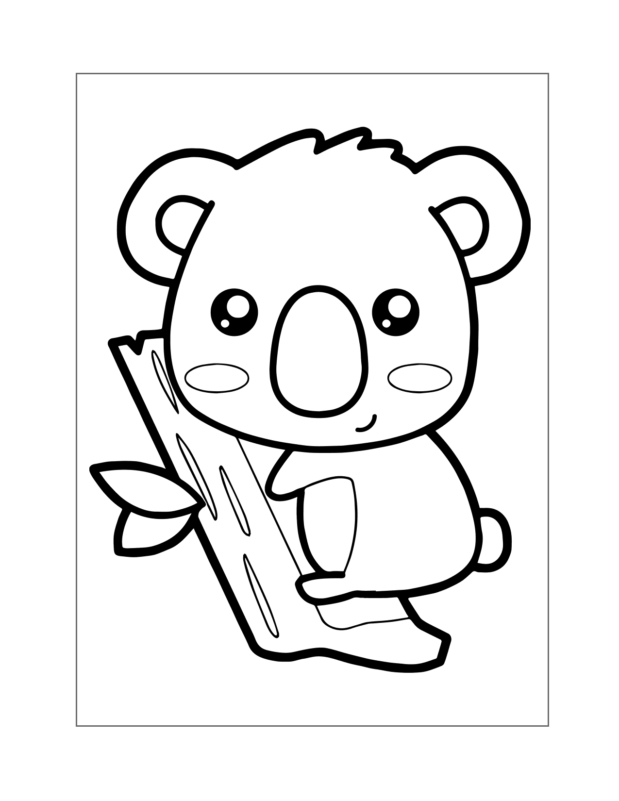 Cute Kawaii Koala Bear Coloring Page Royalty Free Vector