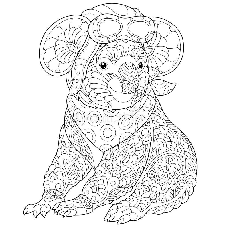 Zentangle Koala Bear Coloring Page Stock Vector Illustration Of Glasses Black 164162114