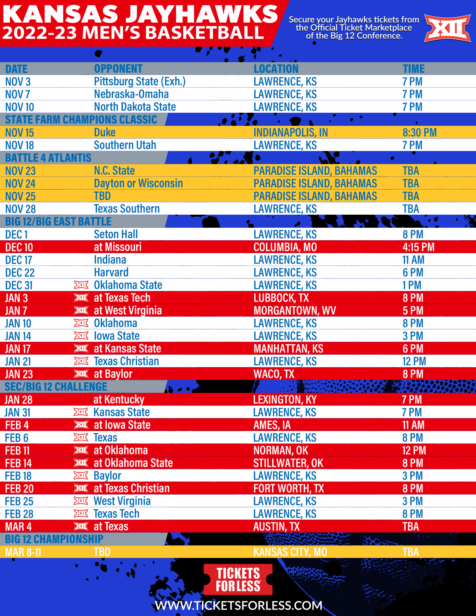 KU Printable Basketball Schedule