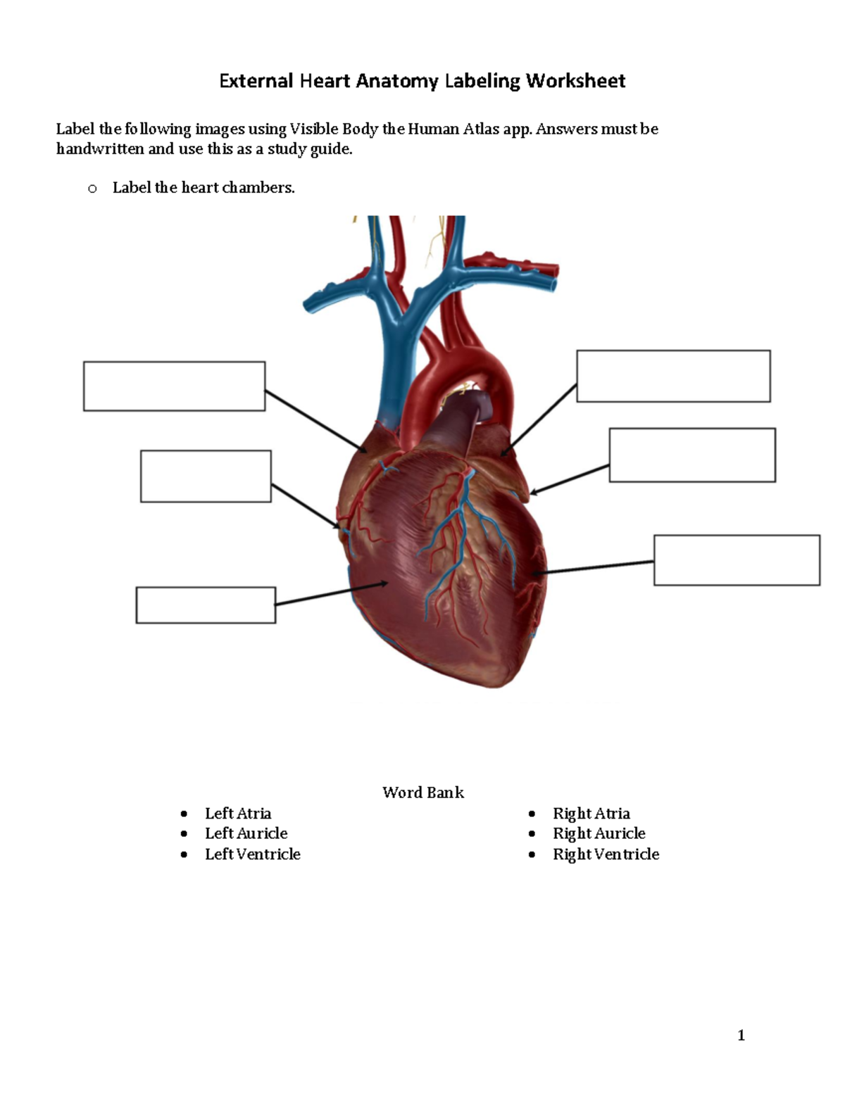 Bio 201 External Anatomy Labeling Worksheet For Heart Structures Studocu