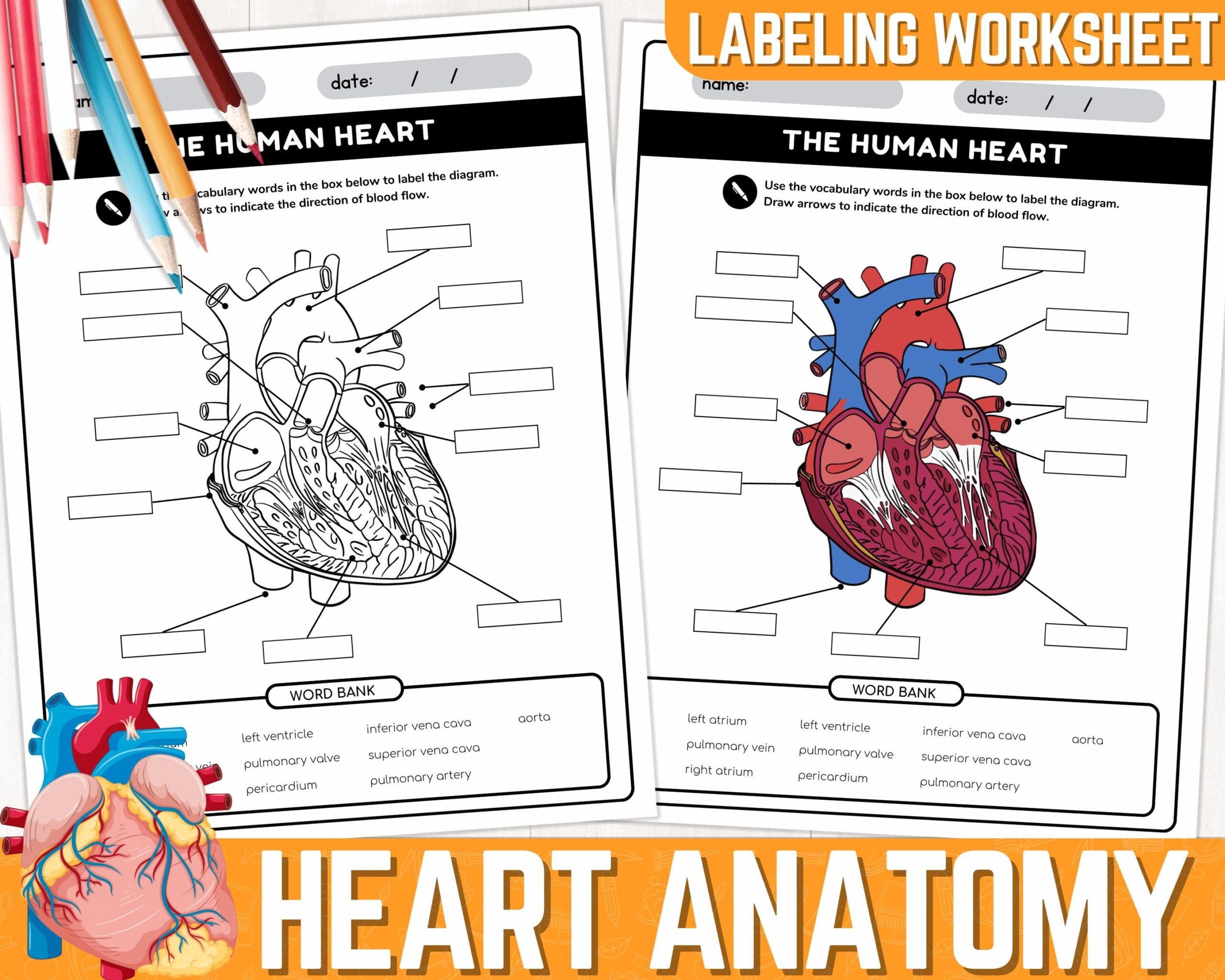 Human Heart Parts Labeling Worksheet Anatomy Of The Heart Parts Of The Human Heart Worksheets Instant Download Printable PDF Etsy