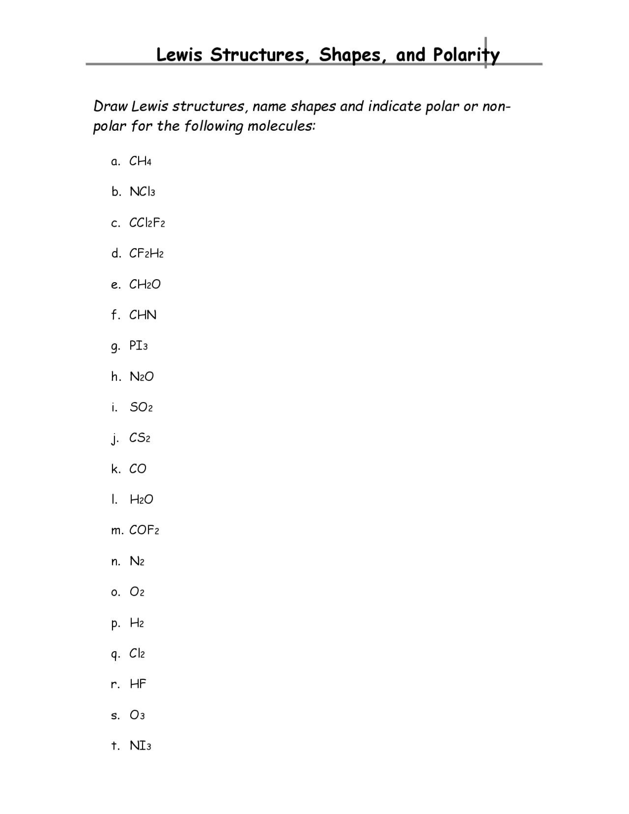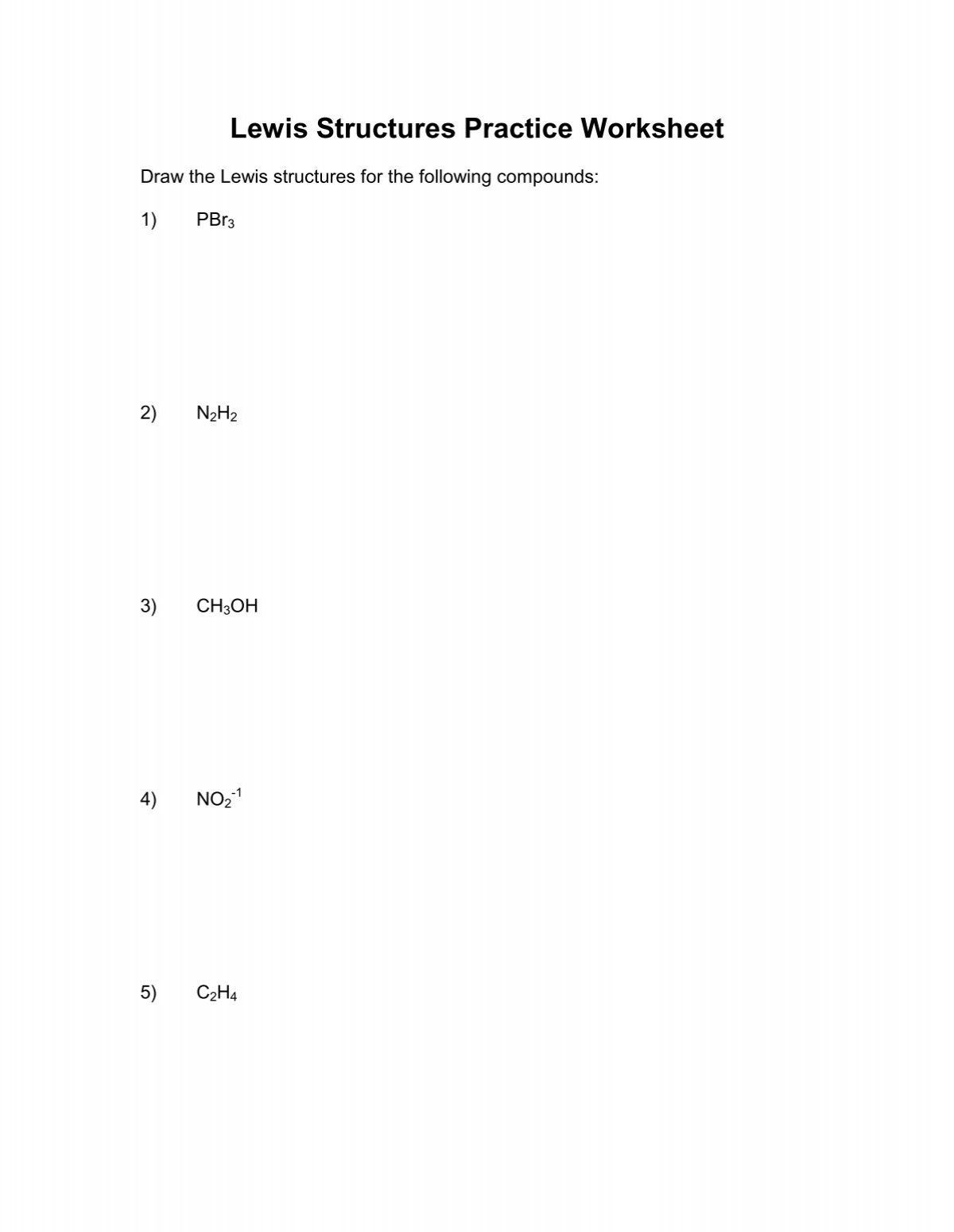 Lewis Structures Practice Worksheet