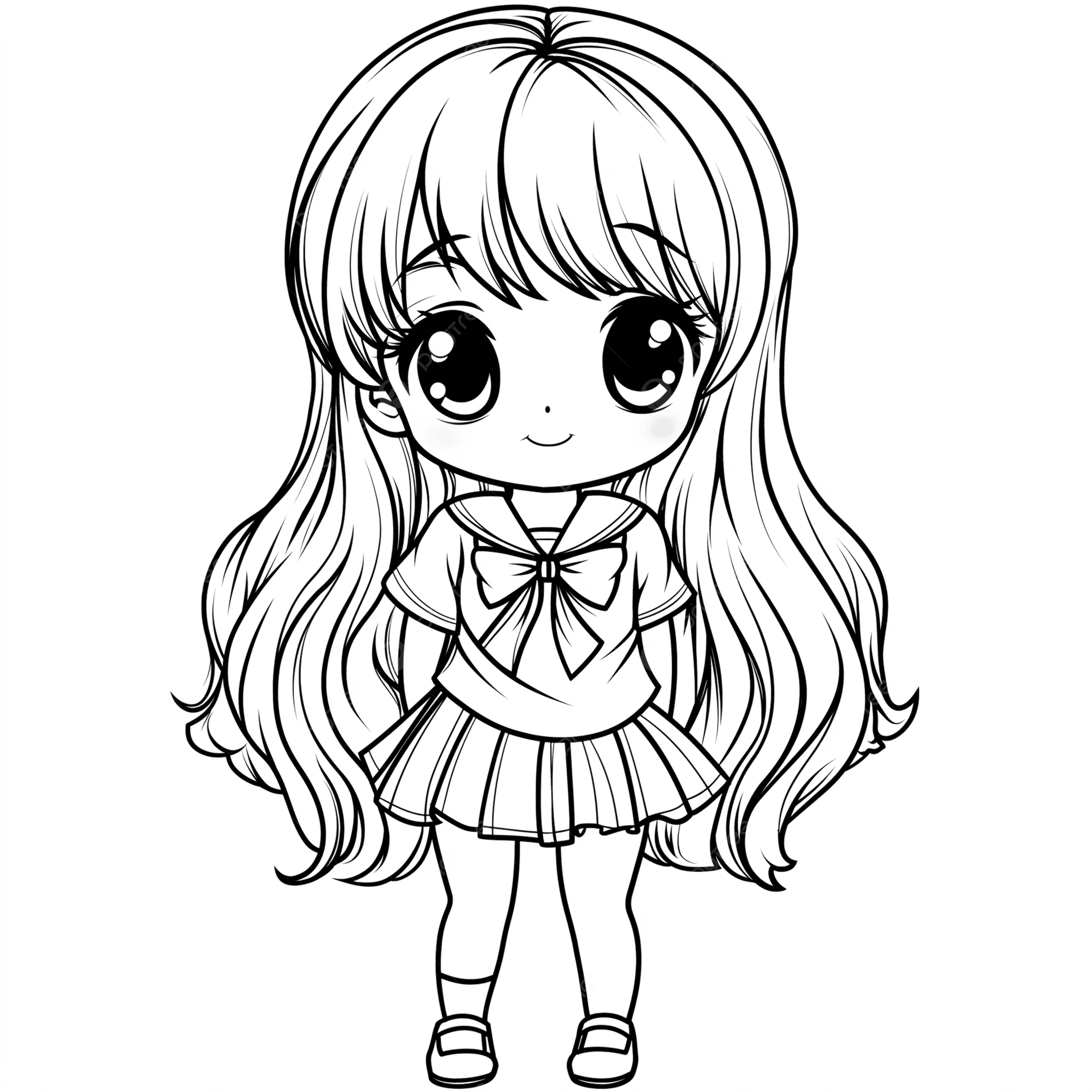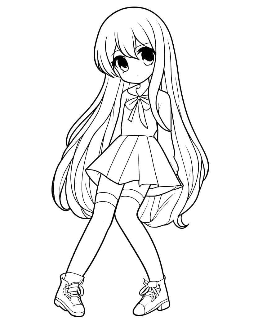 Long Hair Anime Student Girl Coloring Page Download Print Or Color Online For Free